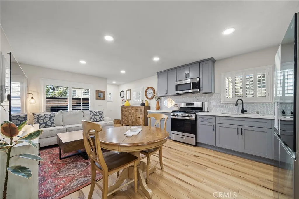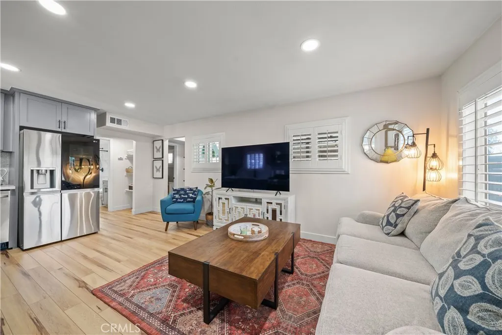 Cozy and beautifully updated, this 2-bedroom, 1-bath home features a fully fenced front courtyard with a covered patio accented by charming pub lightingperfect for relaxing or entertaining. Upon entry, the cozy family room welcomes you with a warm and inviting atmosphere, ideal for everyday living. The remodeled interior showcases new flooring throughout (installed September 2025) and a spacious kitchen featuring gorgeous quartz countertops, a custom backsplash, upgraded cabinetry, and modern stainless steel appliances. The bathroom was recently remodeled in September 2025 and offers a stylish step-in shower with stunning finishes. Additional highlights include elegant plantation shutters, a convenient indoor laundry area, and three storage sheds at the rear of the home providing ample extra storage. Ideal for first-time buyers, downsizers, or anyone seeking a move-in-ready home filled with charm and thoughtful upgrades. Conveniently located just 1.5 miles from the beach, public transit is close by, a few miles from Cal State University Long Beach. Great restaurants, bars, and nightlife all within walking/biking distance.