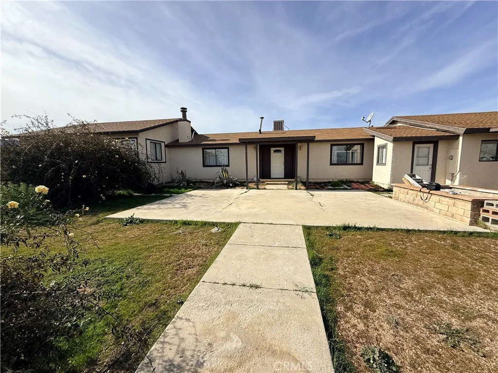 Discover this expansive single-story desert retreat set on a fully fenced and usable 2.5-acre lot, offering space, privacy, and endless possibilities. Spanning 3,316 square feet, this thoughtfully designed home is ideal for multigenerational living, featuring a functional, linear layout that provides both comfort and separation. Upon entry, youre welcomed by a charming foyer that opens to a versatile enclosed bonus room with a bathroom. The right wing of the home showcases a warm family room with a fireplace, an open and spacious kitchen perfect for entertaining, and a private primary en suite bedroom complete with two walk-in closets and a dual sink bathroom. The left wing offers two secondary bedrooms, an additional living room with a fireplace, a recreation room, an enclosed wet bar, and the third bathroomcreating an ideal setup for guests or extended family. Outside, the flat and usable acreage is a dream for animal lovers and garden enthusiasts alike, featuring a metal carport, three separate storage or workshop spaces, and two sheds in the backyard. With breathtaking mountain views, serene surroundings, and ample room to embrace a true country lifestyle, this property offers the privacy and serenity youve been searching for.