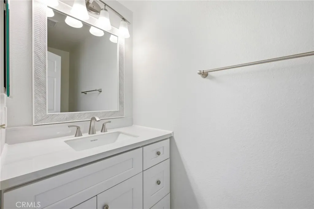 Have you been searching for that completely remodeled, move in ready condo? Well, look no more. This 2-bedroom condo has everything you have been wanting from, beautiful newly installed custom tile throughout the lower level including the living area with gas fireplace framed in light colored quartz, family dining area, breakfast bar and kitchen have been upgraded with quartz counter tops, new dishwasher, microwave, gas oven, refrigerator, new farm sink, freshly painted white cabinets and upgraded lighting features. There is plenty of storge with 2 lower-level closets you can use one for a pantry. Lower bath has new vanity, lighting features and much more. All new baseboards throughout the condo. Upper level has nicely sized guest room, mirrored wardrobe doors, ceiling fan and newly installed carpet. Guest bath has completely been updated, new shower/tub combo, vanity, new tile flooring, mirror and lighting features. Main bedroom is very spacious with newly installed carpet, large, mirrored wardrobe doors and ceiling fan. Main bath is all new as well with new shower/tub combo, vanity, lighting and flooring. There is a laundry closet with double folding doors and a new washer and dryer. This condo has been completely redone from top to bottom! Attached 2 car garage with epoxy flooring. This unit is bright with lots of natural lighting. The community has sport court, pool and club house. Location is perfect for walking to school, promenade mall and the MSJC campus. Did I mention the private gated front patio area! Get ready to move!