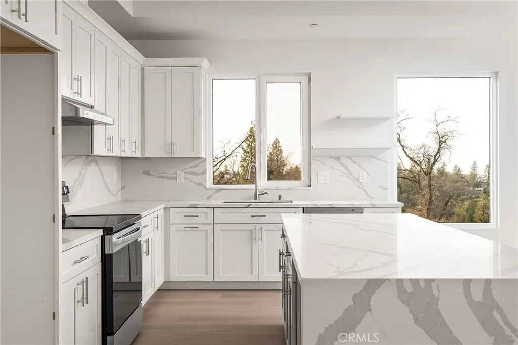 Welcome to this stunning new construction home located in lower Paradise, featuring 3 bedrooms and 2 bathrooms on a spacious lot, ideally positioned to capture serene canyon views along with breathtaking sunrises and sunsets. From the moment you arrive, the home makes a strong first impression with a modern architectural style that blends clean lines, textured finishes, and thoughtful landscaping. The garage design with horizontal glass panels, stone accents, a wide driveway, and mature trees creates a polished yet welcoming curb appeal, setting the tone for the cohesive design found throughout the home. Step inside to an open-concept floor plan where the kitchen takes center stage, showcasing an oversized island with a waterfall-style countertop and sleek contemporary finishesideal for entertaining and everyday living. Designed with the home chef in mind, the kitchen also features a spacious walk-in pantry, offering ample storage and easy access to ingredients and essentials. The kitchen flows effortlessly into the light-filled living area, where wide-plank flooring and custom windows frame the surrounding landscape and flood the space with natural light. A custom glass door opening to the deck visually pulls the outdoors in, extending the living space onto the expansive deckperfect for dining, entertaining, or enjoying peaceful canyon views. Privately situated, the primary suite offers a serene retreat with a spa-inspired ensuite featuring a soaking tub, walk-in shower, spacious double vanity, and a generous walk-in closet. A dedicated indoor laundry room designed for max