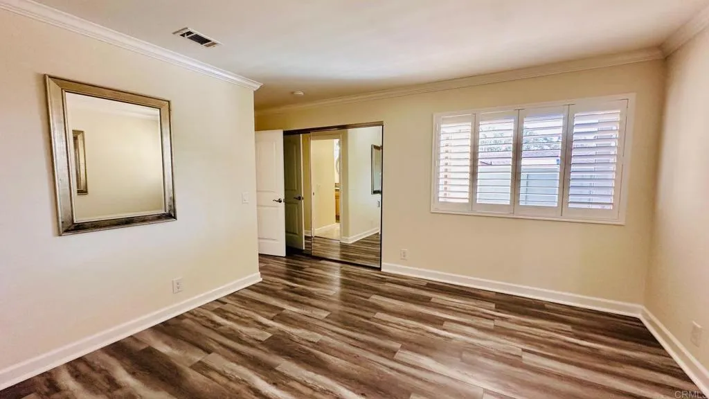 2.6%***VA ASSUMABLE LOAN***2.6% interest rate and Motivated Seller Oceana lll ages 55+ Updated, turnkey home, end unit, top of tract, greenbelt views from living room, plantation shutters throughout, dual pane windows, fresh paint, crown molding, 5 in baseboards, LVP flooring, laundry area in garage and includes washer, gas dryer. Newer water heater, forced air heat and central air conditioning. The primary bedroom looks out to nice sized, private, gated, covered patio. The updated primary bathroom dual vanity, granite counters, lots of drawers for his/her, granite countertops, brushed nickel fixtures, travertine flooring, walk in shower. Second bedroom overlooks greenbelt. The second bathroom has travertine floors, pedestal sink, brushed nickel fixtures, combination tub and shower. Remodeled kitchen, updated cabinets and granite countertops, travertine flooring, stainless steel appliances, included with sale, gas stove, above range microwave, dishwasher and refrigerator. Oceana lll, adult 55+ community in North San Diego County. Situated just 4 miles from the ocean. Residents can enjoy the breezy Oceanside lifestyle and Southern California climate. Community Pool & Spa & Clubhouse. Water Trash Sewer included in monthly HOA ***
