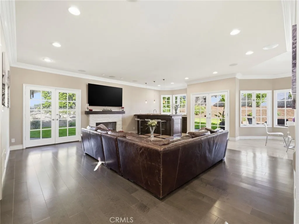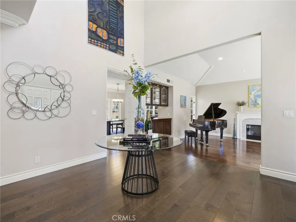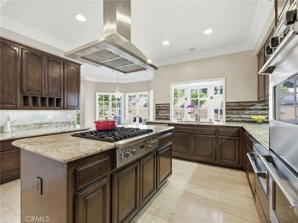 REDUCED $50,000!!! Welcome to 11030 Willowbrae Ave., ideally located near Sierra Canyon School and tucked into the hills of Chatsworth just west of Canoga Ave. This hidden gem sits in a prestigious double cul-de-sac enclave known for expansive estate homes, generous lots, and a serene, refined streetscape where privacy and tranquility prevail. Set on an impressive .40-acre corner lot, this elegantly remodeled nearly 4,000 sq ft residence was built in 1989 and offers 4 bedrooms and 4.5 baths with a thoughtfully designed layout ideal for large or multi-generational livingbalancing connection and privacy with ease. A palm-lined driveway leads to a three-car garage, while the resort-style backyard features a private saltwater pool and spa, resurfaced with Pebble-Tech and enhanced by LED lighting. Double front doors open to a dramatic two-story foyer anchored by a striking three-foot chandelier of layered sculptural glass, creating a luminous and unforgettable first impression. The step-down living room is centered by a marble fireplace and sunlit windows, while double doors lead to a formal dining room perfect for entertaining. Chocolate-toned wood floors and elegant 8-inch crown molding lend understated modern sophistication throughout. The updated chefs kitchen features stainless steel Viking appliances, including a double oven, warming drawer, built-in refrigerator, and new dishwasher, along with granite countertops, glass-tile backsplash, walk-in pantry, large center island, and a cozy coffee nook overlooking the manicured backyard and pool. The kitchen opens to a spacious