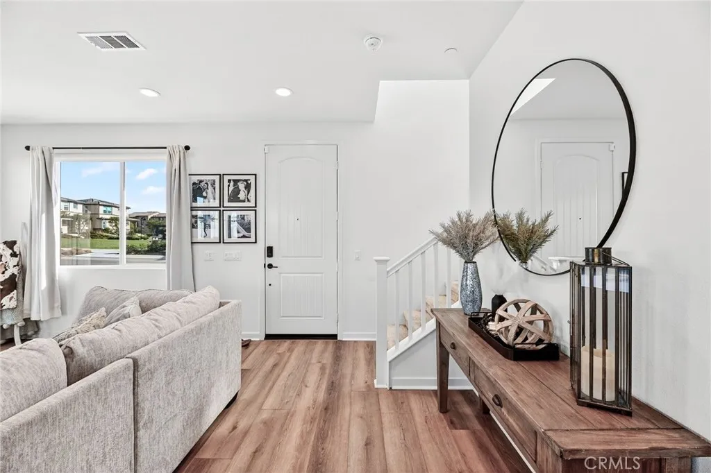 Rare Opportunity in Temeculas Sommers Bend! First time this coveted model has ever hit the resale market. Offering nearly 2,200 sq. ft., this 4 Bed | 3 Bath builder-upgraded residence lives like a single-family homecomplete with a full driveway, a main-floor bedroom and bath ideal for multi-generational living, and a private balcony off the primary suite. Designer upgrades include enhanced kitchen cabinetry, premium LVP flooring, epoxy garage floors, solar to help reduce energy costs, and a finished private yard. With no front-facing neighbor, the home is filled with natural light, and a community park sits just steps across the street. As you enter, youre welcomed by a bright, open-concept floor plan anchored by a gourmet kitchen featuring upgraded cabinetry, stainless steel appliances, quartz countertops, an extended island, and a designer backsplash. The modern layout flows seamlessly into the spacious living and dining areas, creating the perfect setting for both everyday living and entertaining. The main level also includes a full bedroom and bathroom for added flexibility. Upstairs, an open loft thoughtfully separates the secondary bedrooms from the private primary suite, offering both functionality and privacy. The primary retreat features updated flooring and a well-appointed en-suite bath. Down the hall, two additional bedrooms share a dual-sink bathroom, along with a convenient second-floor laundry room. The backyard is finished with low-maintenance artificial turf and a concrete patio, perfect for relaxing evenings! Turnkey, spacious, and truly one of a kind, thi