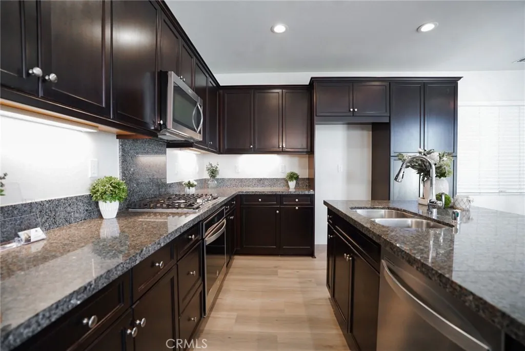 Located in the highly desirable The Preserve community of Chino, this beautifully designed two-story home welcomes you with a charming front porch and a bright, open layout enhanced by new flooring and fresh interior paint throughout. Step into the light-filled foyer, which leads to a convenient downstairs bedroom with a full bathroomperfect for guests, multigenerational living, or a private home office. The heart of the home is the expansive open-concept living space, featuring a designer kitchen with stainless steel appliances, ample counter space, and a large center island ideal for meal prep and entertaining. The spacious dining area is highlighted by a large window, creating a warm and inviting atmosphere for everyday meals and special gatherings. Upstairs, the luxurious owners suite offers resort-style comfort with an oversized walk-in closet, dual sinks, an oval soaking tub, a separate enclosed shower, and a private toilet area. Additional highlights include an upstairs laundry room and generously sized secondary bedroomsperfect for a growing family or flexible work-from-home needs. Residents of The Preserve enjoy access to an impressive resort-style clubhouse situated on a three-acre site. Amenities include a fully equipped fitness center, game room, two lighted tennis courts, a junior Olympic-size swimming pool, and a relaxing barbecue areaideal for entertaining, staying active, or unwinding close to home.