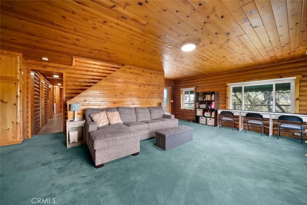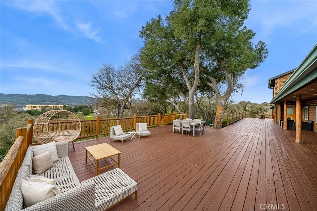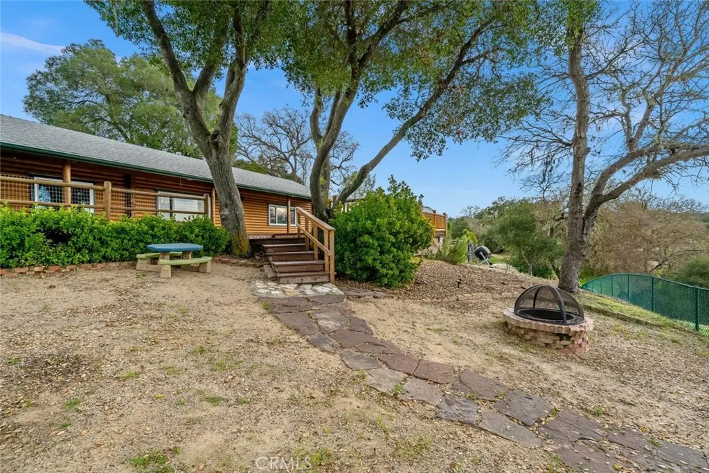 Tucked among majestic oak trees with sweeping panoramic views, this rare true log home feels like a mountain getaway yet its right here in Atascadero. Crafted entirely of logs inside and out, the home radiates warmth, character & a kind of cozy charm you simply cant replicate. The main living area is designed for connection & comfort, with a beautifully updated kitchen featuring granite countertops, an oversized bar perfect for gathering, and seamless flow into the dining & living areas. A pellet stove anchors the living room, creating an inviting space for relaxed evenings and cool-weather ambiance. Downstairs offers two bedrooms and two full baths, along with a spacious secondary family room; ideal as a media room, play room, gym, or guest retreat, complete with abundant built-in storage. A separate indoor laundry room adds to everyday convenience. The primary suite occupies the entire upper level, offering a peaceful & private escape with treetop views; feels like your own private sanctuary. Step outside onto the expansive deck and take in the breathtaking scenery, where oak-studded hills, vegetable gardens, and fresh air create a true sense of retreat. Additional highlights include a detached two-car garage with a brand-new garage door, EV charger, owned solar, new A/C, new dual-pane windows throughout, multiple storage sheds and thoughtful updates that blend modern efficiency with original charm. This is more than a home, its a lifestyle. Cozy, charming & unique, this magical log cabin offers the feeling of being on vacation every single day.