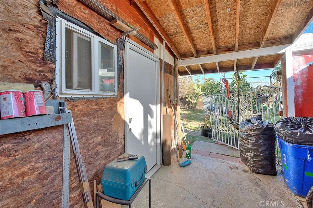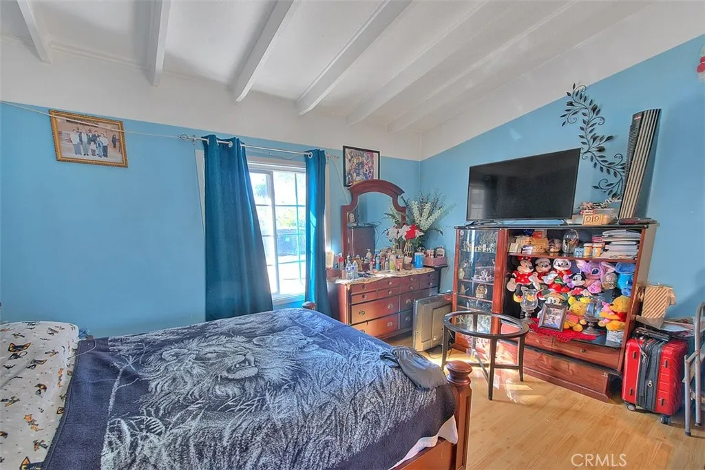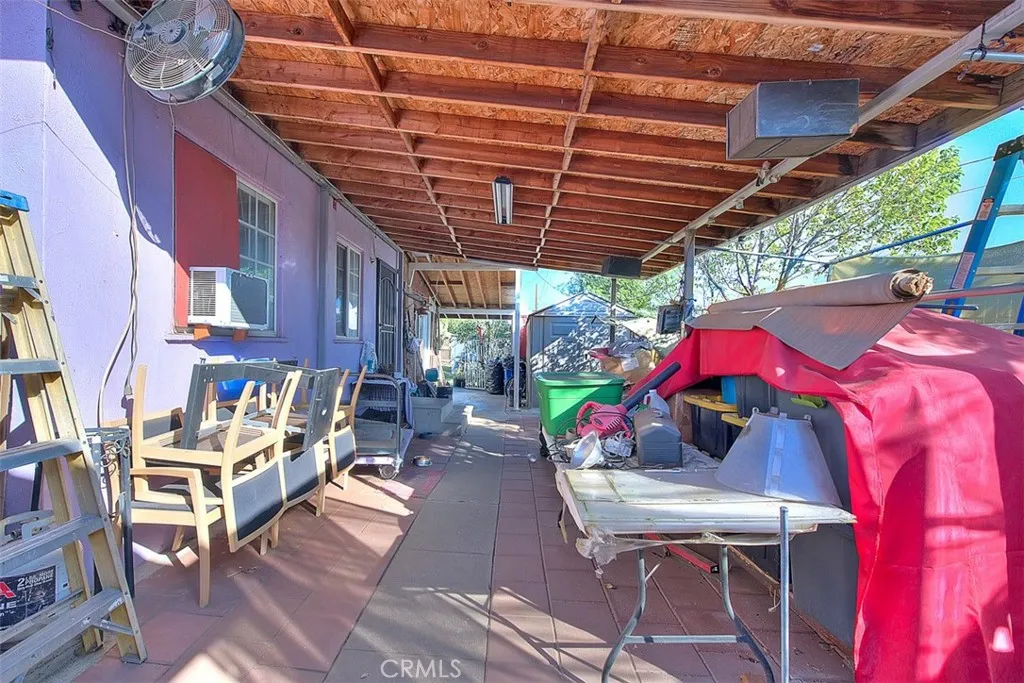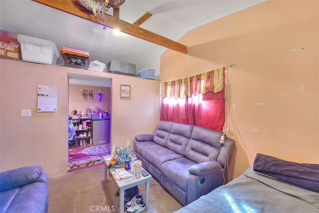 Welcome to this charming and 2-bedroom, 1-bath home, great for a first-time buyer or those looking to downsize. As you enter, a bright and spacious family room with vaulted ceilings and exposed beam detail, that gives it an open and inviting atmosphere. The home features laminate flooring throughout the family room, hallway, and bedrooms, along with good-sized bedrooms and an updated bathroom. The kitchen is cozy and offers good amount of cabinetry and workspace, with an adjacent dining area that opens nicely to the living space. Natural light flows throughout the home, enhancing its warm and welcoming feel. Recent improvements include a new roof on both the main house and the detached garage. The detached one-car garage has been converted into additional living space, currently used as a studio, options such as a home office, or a hobby room. There is also a rear addition currently used as a laundry room and storage area. The exterior offers multiple usable spaces, including a covered patio area ideal for outdoor seating or storage, a side yard with concrete access, and a wide driveway with possible RV access, allowing drive-through access into the backyard. The yard provides room for gardening, outdoor projects, or future customization, all set on a quiet residential street with great curb appeal.