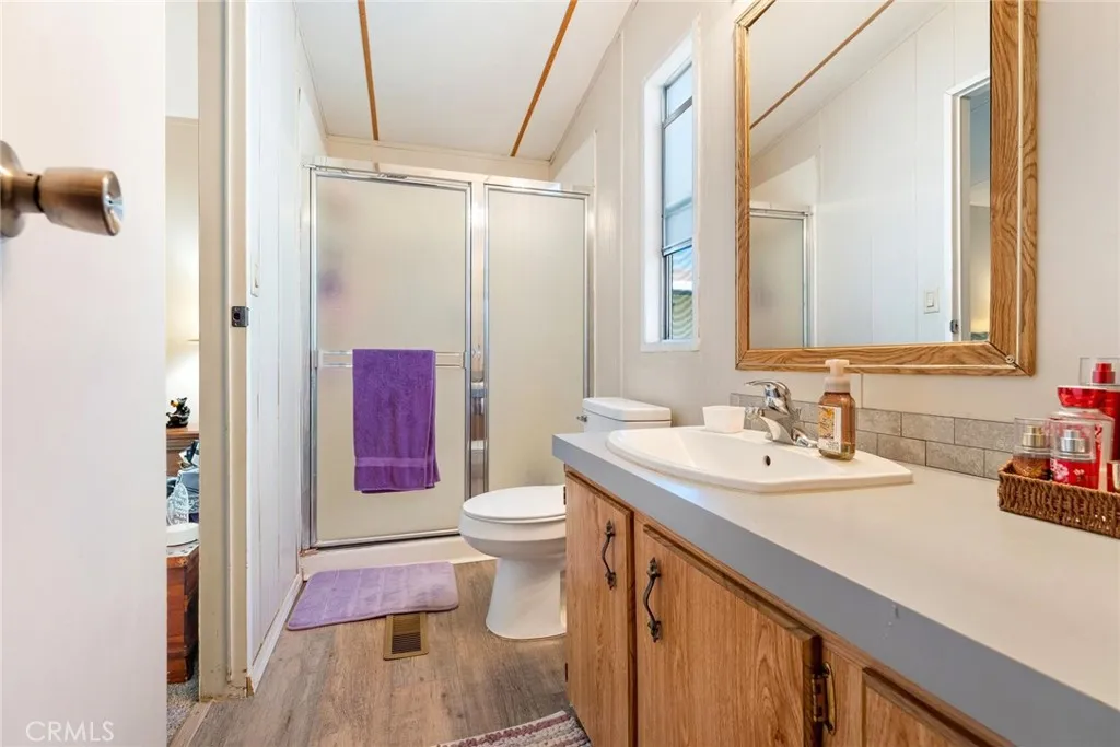 This perfect 2 bedroom 2 bathroom mobile home is located in Juniper Terrace 55+ senior community. Ready for new owners! Home has been loved and taken care of. Light and bright open concept with laminate floors. Each bedroom is ample in size and are on opposite sides of the home. Outside patio is open to outside living, enjoy a cup of coffee or glass of wine on porch. Carport could accommodate 3 cars. Shed stays.
