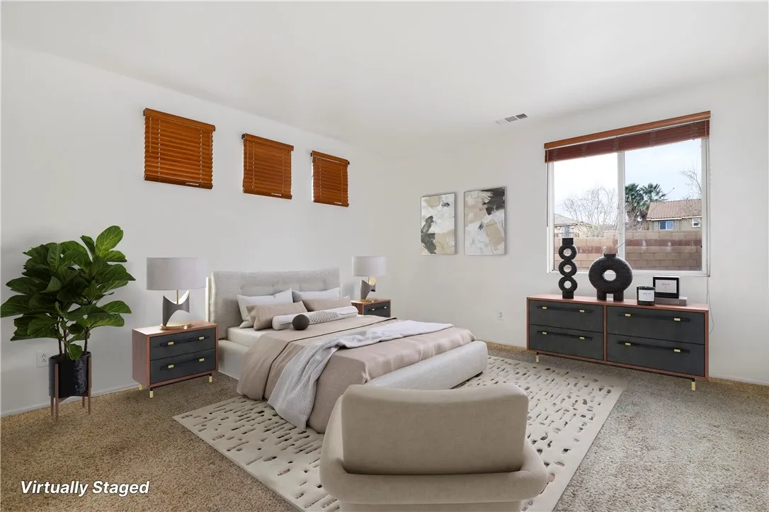 Beautiful 3 bedroom, 2 bathroom home located in desirable West Palmdale. This well-maintained property features a spacious and functional floor plan, generous living areas, and abundant natural light throughout. Recent updates include freshly painted interior walls, newly installed carpet, giving the home a fresh updated feel. The kitchen offers ample cabinet space and opens to the dining and family room, perfect for everyday living and entertaining. The primary suite includes a private bathroom and plenty of closet space. Enjoy a nicely sized backyard with room to create your own outdoor retreat. Conveniently located near schools, parks, shopping, and commuter access. A must see!