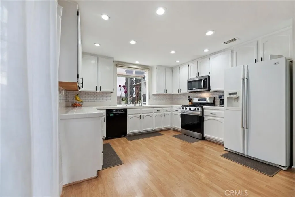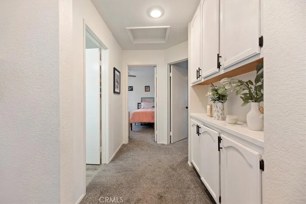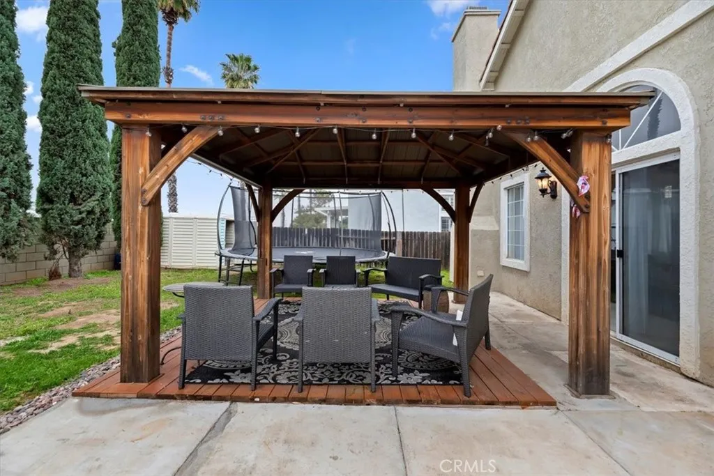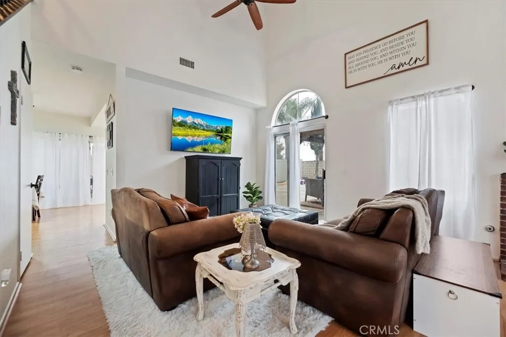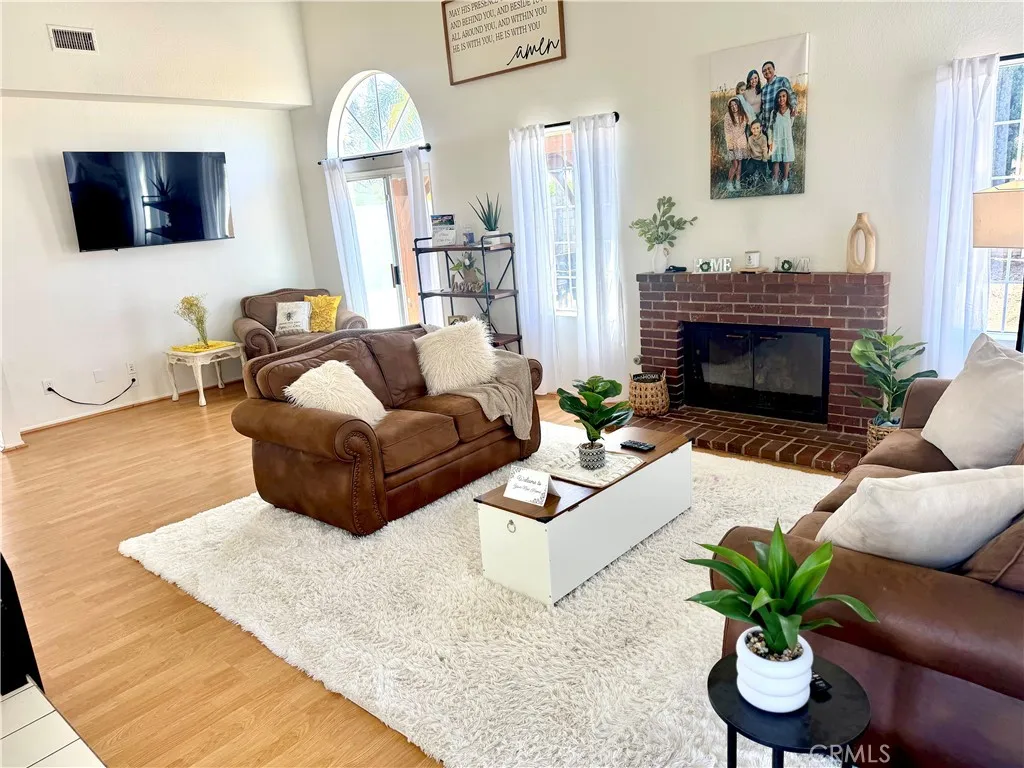 Welcome to Orangecrest! This delightful 3-bedroom, 2.5 bathroom home spans 1,760 square feet across two stories and is ready for you to move in. Situated in the highly sought-after Orangecrest neighborhood of Riverside, it's within walking distance of award-winning elementary and middle schools and MLK High School. Just a short stroll from Orange Terrace Park, the library, and a community center surrounded by sports fields for year-round fun. As you enter the home, the foyer opens to a spacious living room, perfect for a reading nook by the timeless brick fireplace, along with a cozy TV area and high vaulted ceilings. The kitchen offers ample cabinet space and a separate walk-in pantry, extending into a dining area that comfortably fits a family-style table and an office nook or study corner. Up the newly carpeted stairs, the primary bedroom awaits, offering generous space, natural light, a wall-length closet with mirrored doors, and views of the orange groves. The primary bathroom suite features dual vanity sinks, a newly reglazed shower-tub combo, new laminate flooring, and a separate toilet area. Down the hall, you'll find a small loft with storage, two additional bedrooms (one with a spacious walk-in closet), and new laminate with freshly re-glazed shower-tub combo in the hallway bathroom. The back yard sets the tone to enjoy outdoor meals under the large covered gazebo with decking and hanging lights while you relax in privacy with no neighbors behind you. This home boasts solid construction, with a new (2022) LENNOX 4-ton air-conditioning system, LENNOX Ultra Smart Th