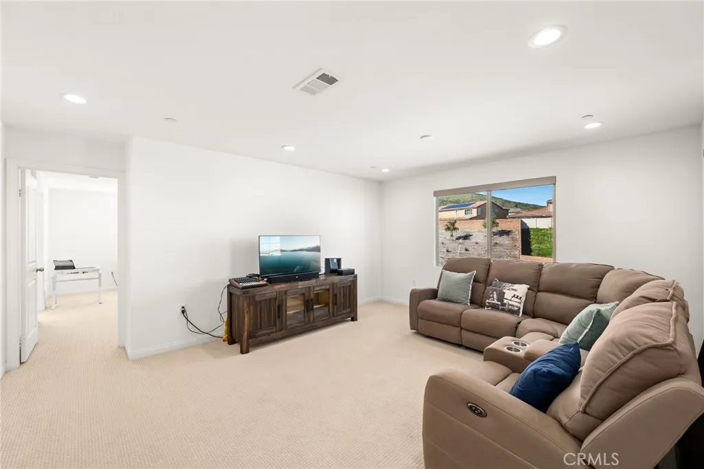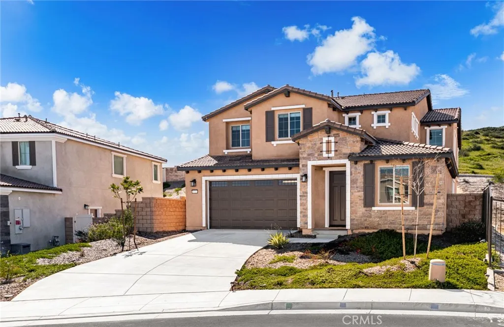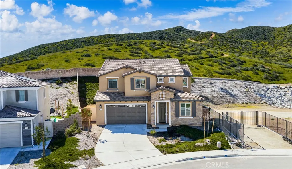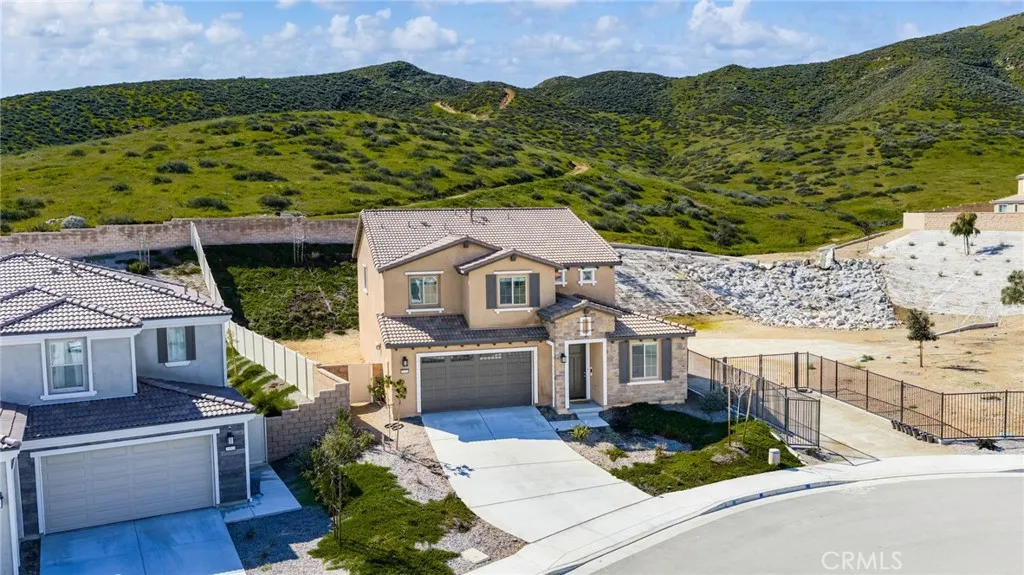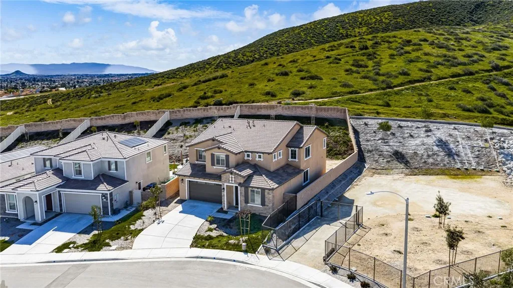Welcome to this stunning two-story home located in one of Menifees most desirable communities. Built in 2024, this beautifully designed residence offers 4 spacious bedrooms, 3 full bathrooms, and 1 half bath with approximately 3,410 square feet of elegant living space. The main level features a highly functional open-concept layout, including a convenient downstairs bedroom with full bath, ideal for guests or a private home office. The chefs kitchen is the heart of the home, showcasing a large executive island, upgraded cabinetry, and generous counter space, perfect for entertaining and everyday living. Upstairs, enjoy a versatile loft area that can be used as a family room, media space, or play area. The luxurious primary suite offers ample closet space and a beautifully appointed bathroom. Additional bedrooms are well-sized and filled with natural light. This home also includes premium upgrades throughout such as recessed LED lighting, modern finishes, and upper and lower cabinets in the laundry room. The spacious backyard provides endless possibilities for outdoor living, future landscaping, or a custom entertainment area. Ideally located near schools, shopping centers, dining, parks, and with easy access to major freeways. This exceptional property offers the perfect combination of space, style, and location... a true must-see for todays buyers. Seller is motivated. This opportunity will go fast!!!