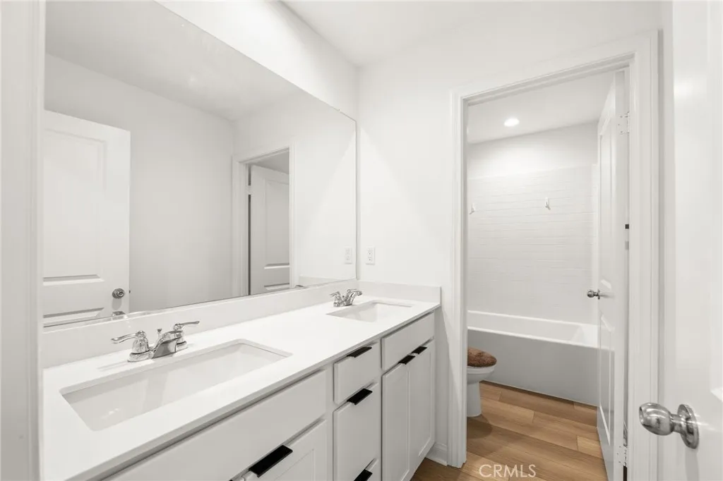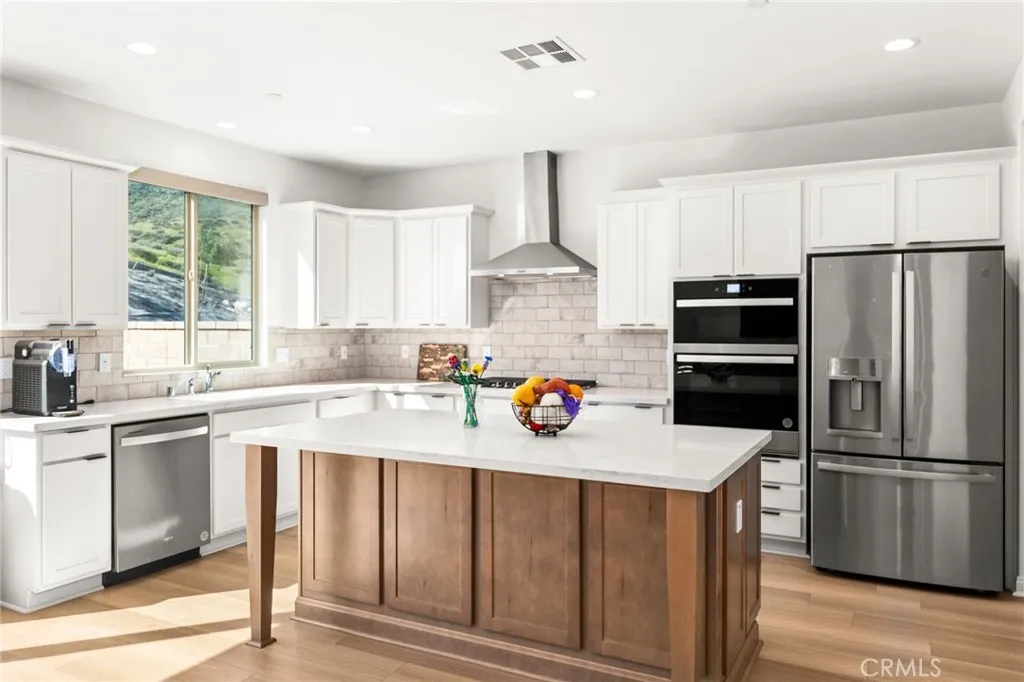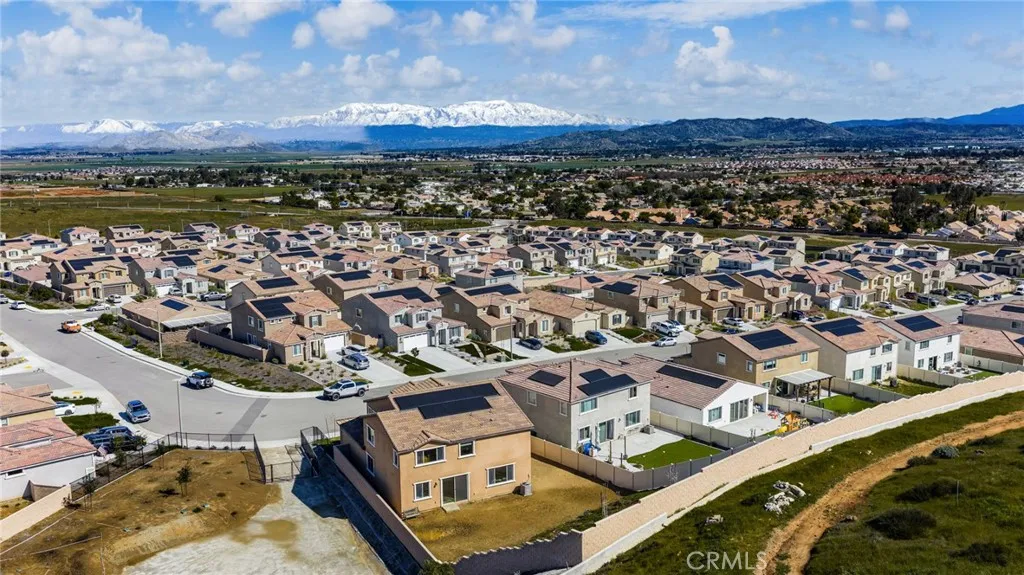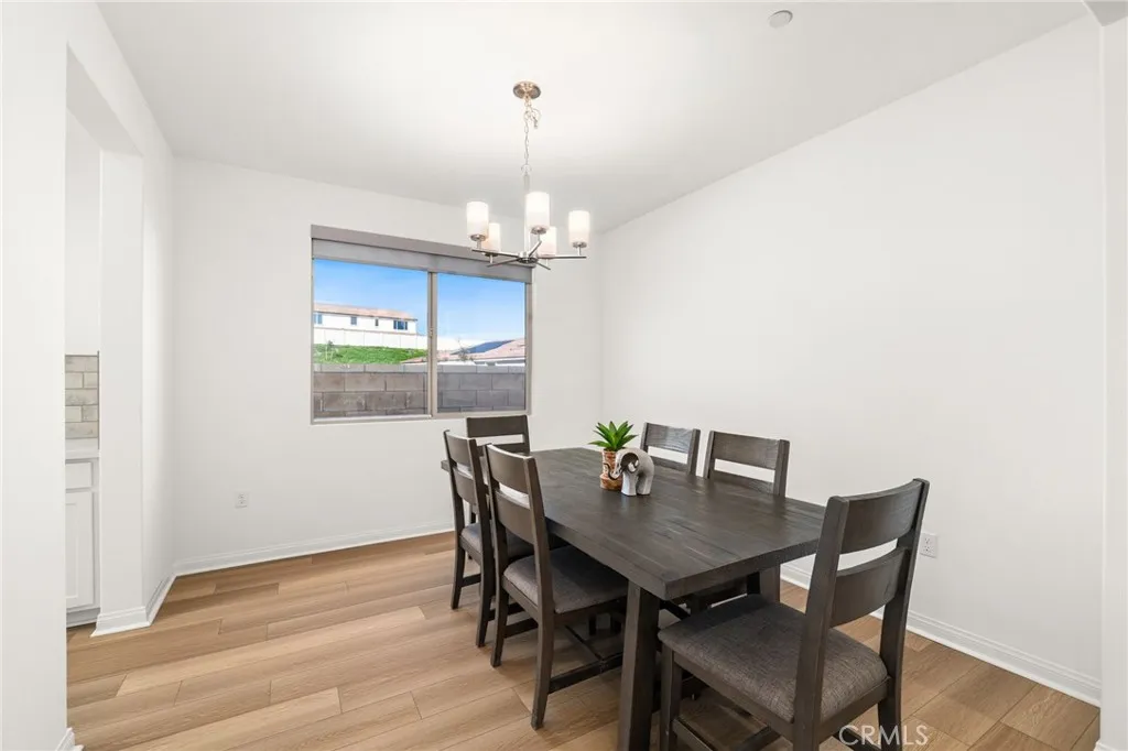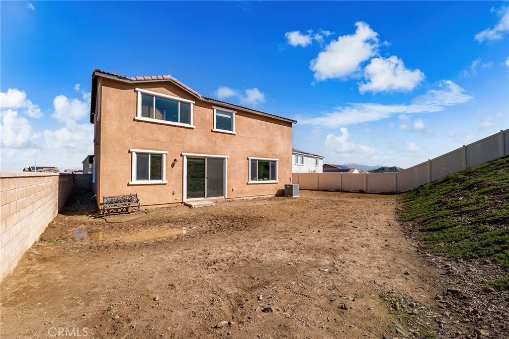 Welcome to this stunning two-story home located in one of Menifees most desirable communities. Built in 2024, this beautifully designed residence offers 4 spacious bedrooms, 3 full bathrooms, and 1 half bath with approximately 3,410 square feet of elegant living space. The main level features a highly functional open-concept layout, including a convenient downstairs bedroom with full bath, ideal for guests or a private home office. The chefs kitchen is the heart of the home, showcasing a large executive island, upgraded cabinetry, and generous counter space, perfect for entertaining and everyday living. Upstairs, enjoy a versatile loft area that can be used as a family room, media space, or play area. The luxurious primary suite offers ample closet space and a beautifully appointed bathroom. Additional bedrooms are well-sized and filled with natural light. This home also includes premium upgrades throughout such as recessed LED lighting, modern finishes, and upper and lower cabinets in the laundry room. The spacious backyard provides endless possibilities for outdoor living, future landscaping, or a custom entertainment area. Ideally located near schools, shopping centers, dining, parks, and with easy access to major freeways. This exceptional property offers the perfect combination of space, style, and location... a true must-see for todays buyers. Seller is motivated. This opportunity will go fast!!!