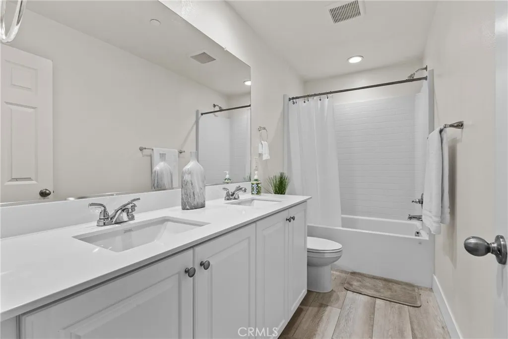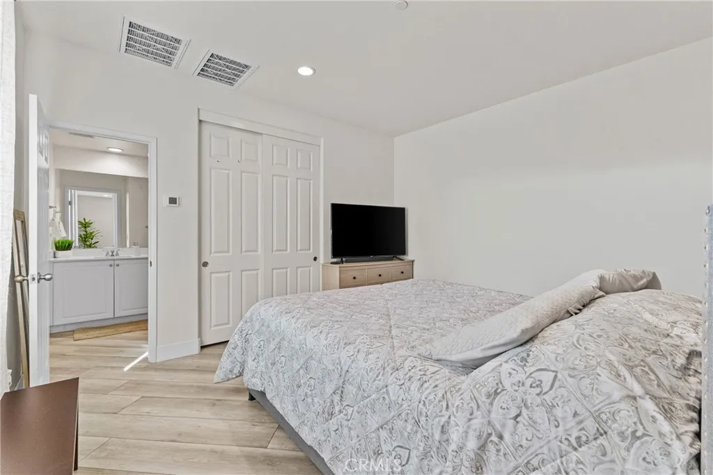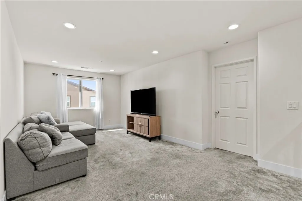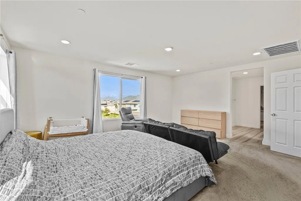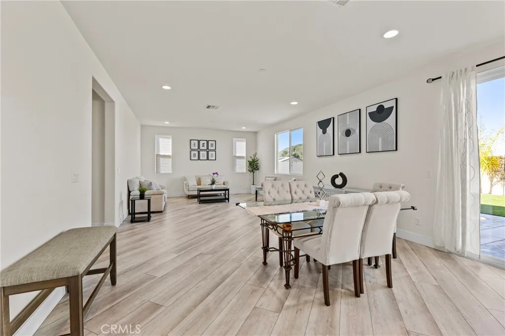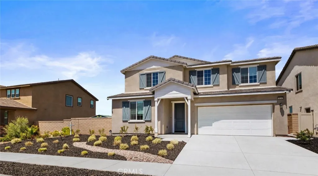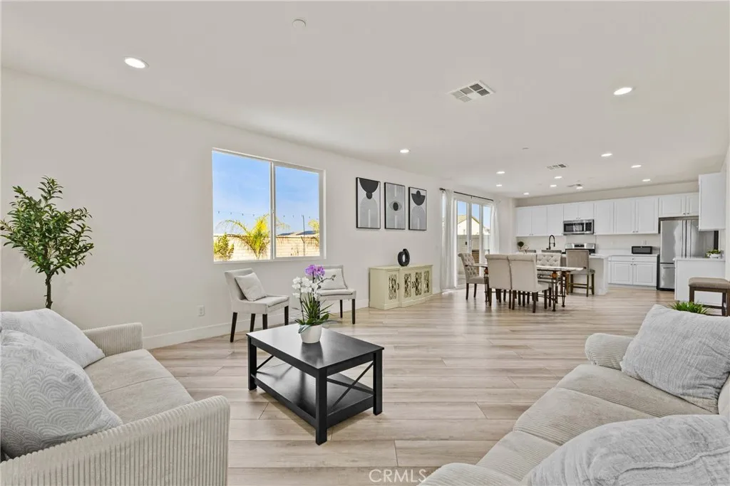 Built in 2023, this 5-bedroom, 3.5-bath home offers 3,052 sq ft of thoughtfully designed living space and includes a fully paid solar system with no lease to assume. The first-floor suite features a private living area, bedroom, and full bath, providing flexible living options. The open-concept main level connects a modern kitchen complete with quartz countertops, farmhouse sink, and walk-in pantry to bright living and dining areas. Luxury vinyl flooring runs throughout the home. Upstairs includes a versatile loft suitable for a home office, media space, or additional living area. The backyard offers added privacy with no rear neighbors, creating a comfortable space for outdoor use and entertaining.