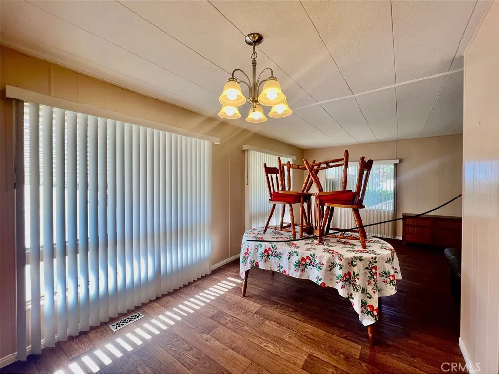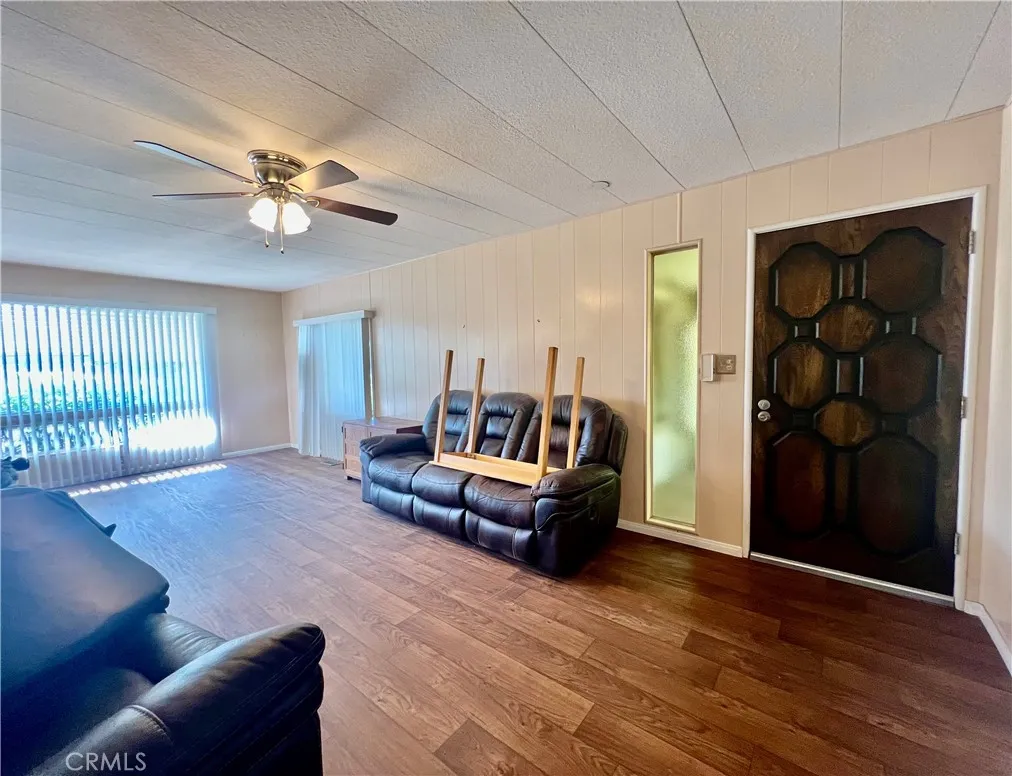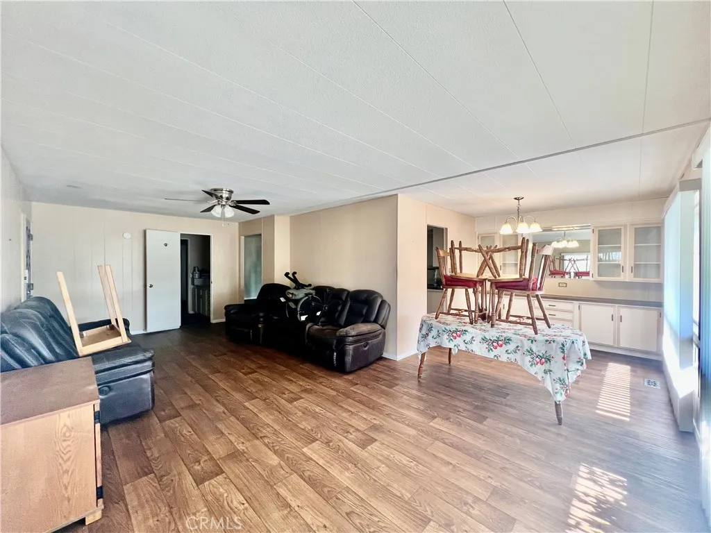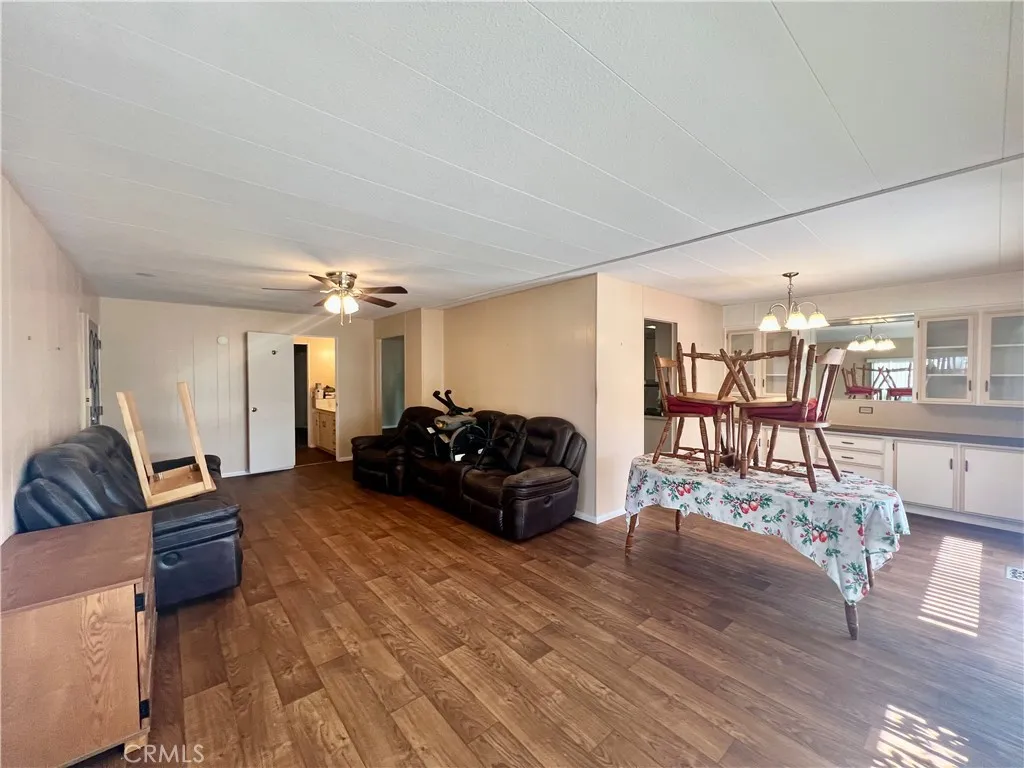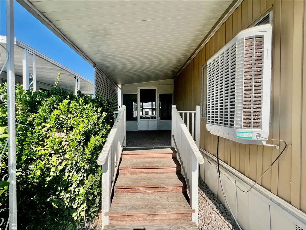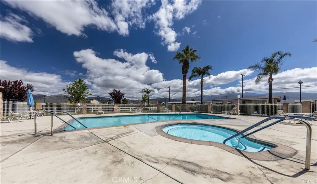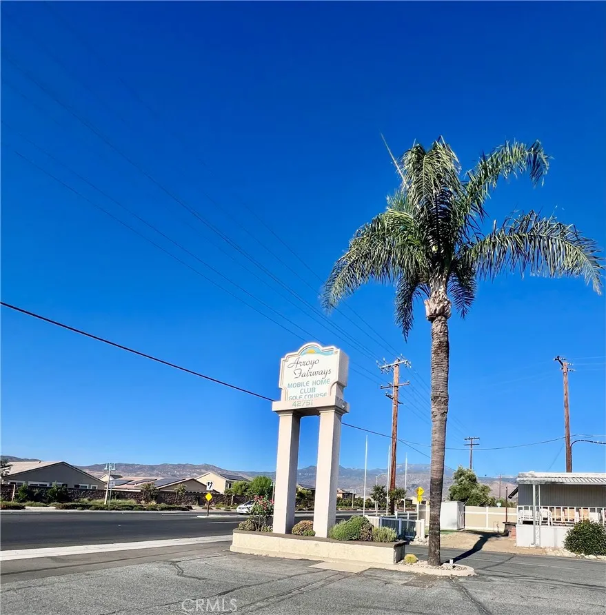 Welcome to Arroyo Fairways, a 55+ golf course community offering a peaceful, amenity-rich retirement lifestyle. This well-maintained home features a covered front entrance porch & screened in sunroom with stunning views of the Idyllwild Mountains, ceiling fan, custom window blinds throughout, central heating, laminate wood flooring. The kitchen flows seamlessly into the dining area, while the spacious living room is filled with natural light from large picture windows that frame beautiful evening sunsets. The primary bedroom includes a wardrobe closet and built-in dresser drawers, and the adjoining bathroom has two separate his & her vanity areas. The washer & dryer (INCLUDED) are located off the master bathroom in a separate closet area. The additional bedroom is generously sized with a walk-in closet. Included with the home are a refrigerator & washer and dryer. Residents of Arroyo Fairways enjoy access to a clubhouse with a newly remodeled kitchen and TV room, billiards, covered shuffleboard courts, a swimming pool, a jacuzzi, and unlimited free golfall set in a tranquil and scenic community perfect for embracing the retirement lifestyle.