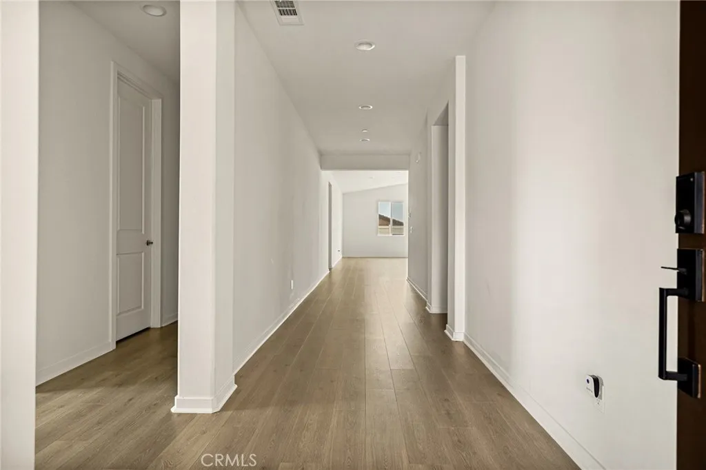 Single-story home located on a corner lot in Vista Verde at Mediterra in Highland, built in 2023 and in pristine condition. This spacious residence offers four bedrooms plus a den and three bathrooms, featuring a desirable open floorplan designed for modern living. The kitchen flows seamlessly into the family room and showcases a large center island, eat-in dining area, stainless steel appliances, and plenty of space to make it your own. The primary suite includes a walk-in closet and an ensuite bathroom with dual sinks, a separate shower, and soaking tub. The backyard is a blank canvas ready for your personal touch. Additional highlights include owned solar for energy efficiency. Nestled at the base of the foothills, the community offers amenities including a pool and park, providing both comfort and convenience.