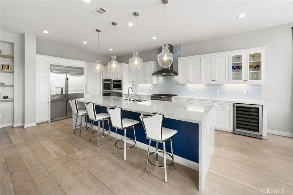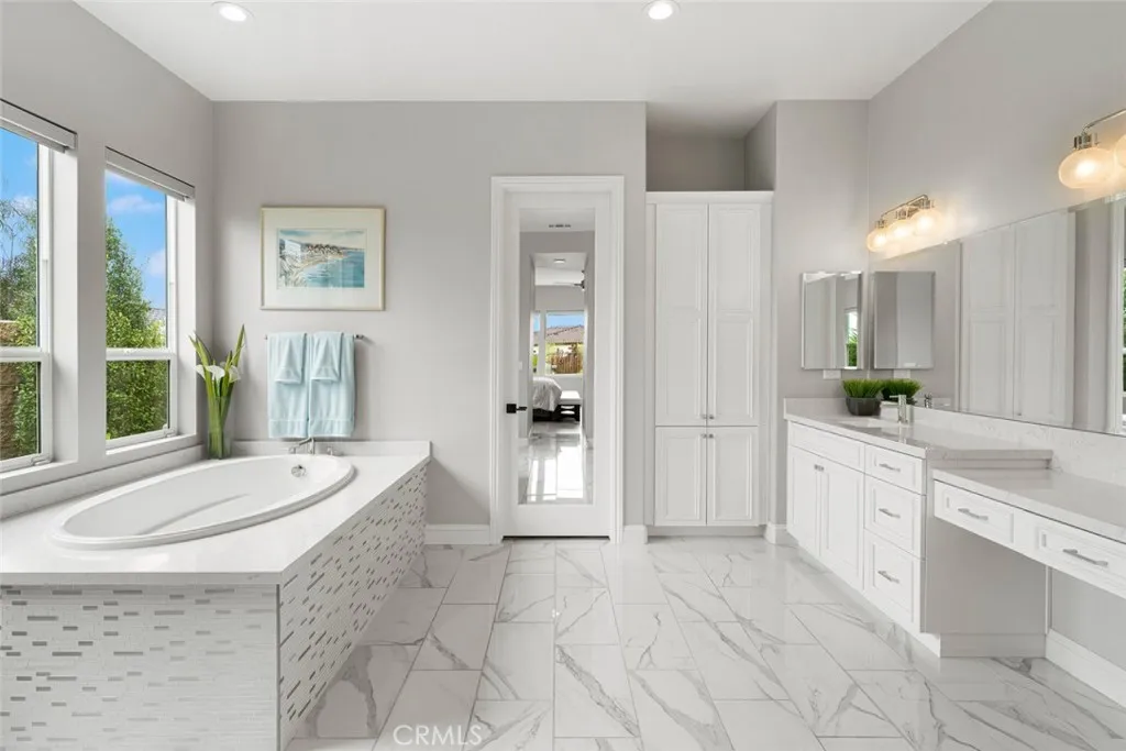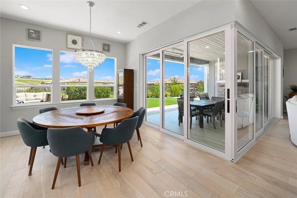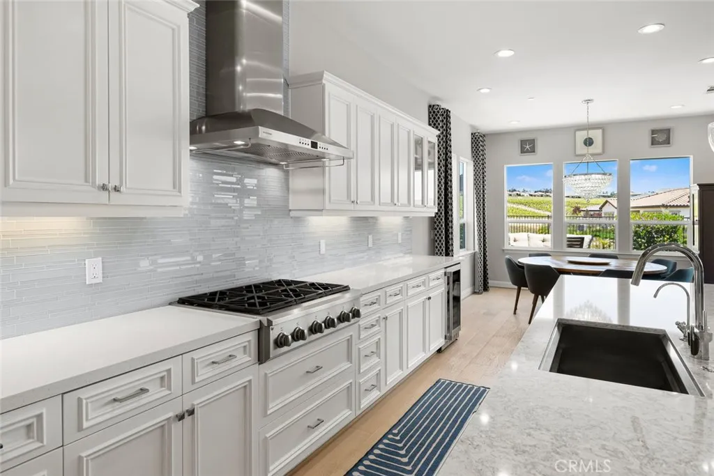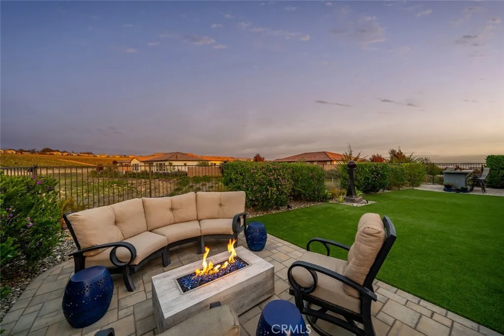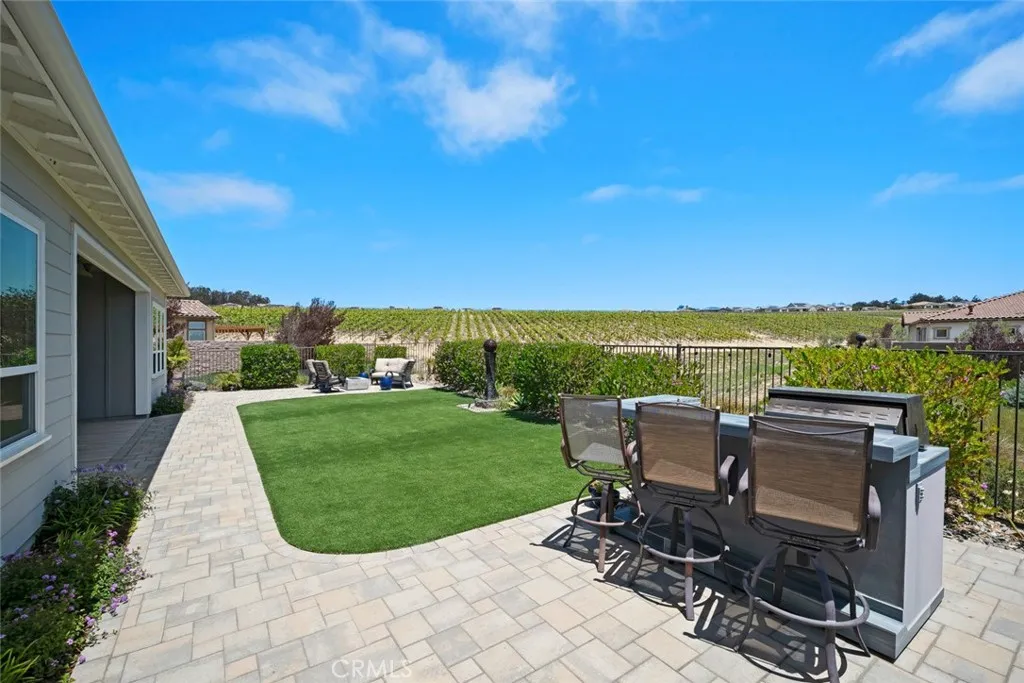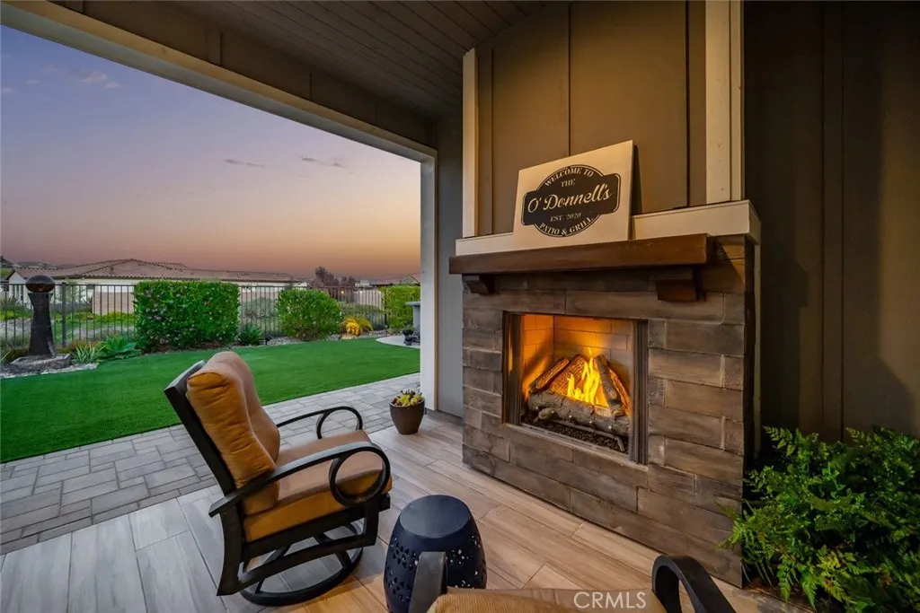 Welcome to the Carmel - this highly-sought-after model with a casita is set deep in a cul-de-sac, overlooking the vast, magnificent vineyards, offering you the very best in indoor/outdoor living. Built in 2020, at 3,005 sq. ft., this beautiful home, with modern coastal exterior, features 3 bedrooms, 3.5 bathrooms and a den. Youll love the main living area - a large living room with surround sound; a gathering area which shares a stunning dual-sided floor-to-ceiling fireplace with the adjacent music room/den; and a culinary kitchen with separate dining - its open and bright with spectacular vineyard views through the two rolling walls of glass. The upgrades are abundant - luxury engineered wood flooring, custom floating shelves around the fireplace, plantation shutters/remote shades/window treatments, ceiling fans, extra LED ceiling lights, upgraded cabinetry and quartz countertops throughout. The culinary kitchen is gorgeous with white raised-panel cabinetry, top-of-the-line GE Monogram appliances including a built-in refrigerator, 6-burner gas cooktop with upgraded stainless hood (with custom tile to the ceiling), double wall ovens, warming drawer, wine fridge, white quartz countertops, an extra long waterfall quartz island and a separate dining space with custom crystal chandelier. Outside are multiple beautifully-designed spaces: a covered patio with ceramic plank tile floor, fireplace, ceiling heater, speakers and wired for TV; a gas fire pit corner; a built-in barbecue island; and a centerpiece water feature. These separate areas are joined together by pavers, artifici