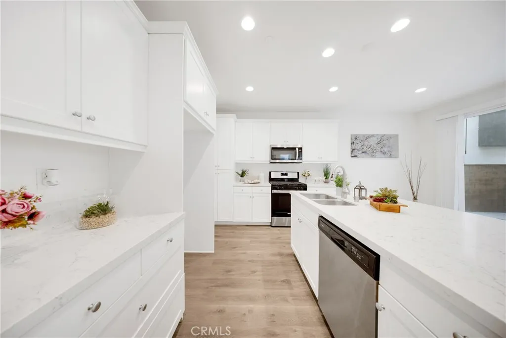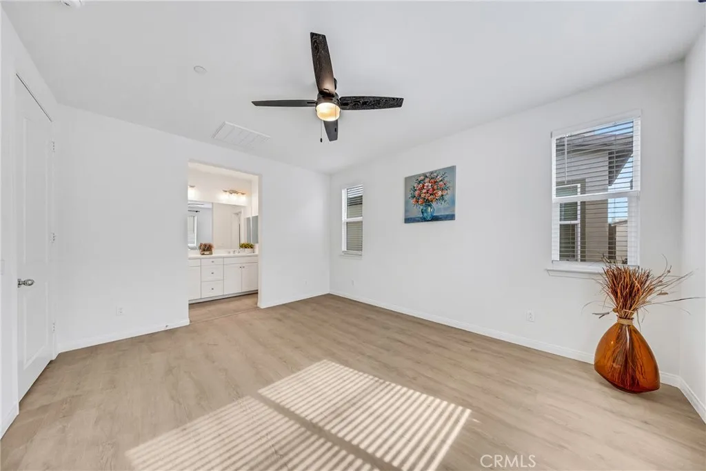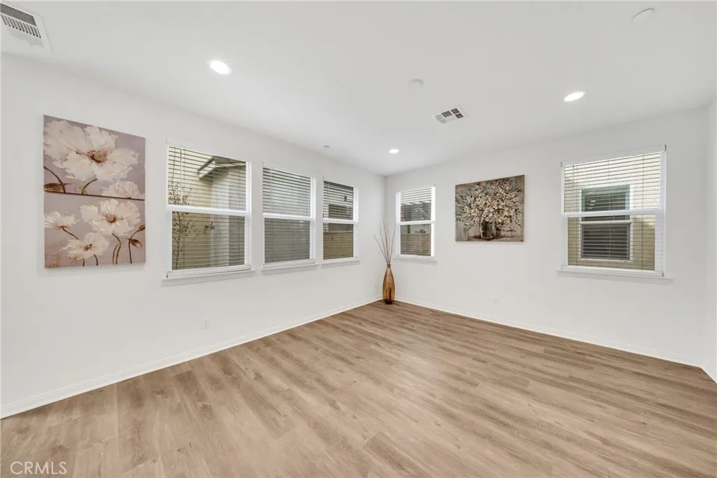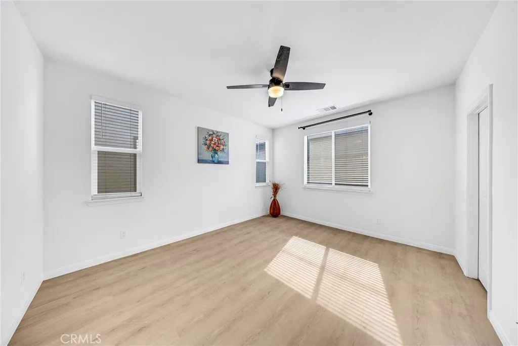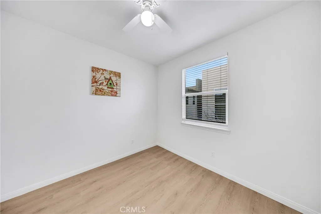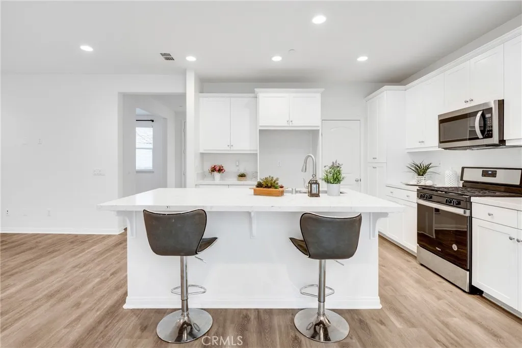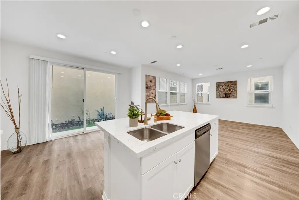 Located at 10532 Wilding, Rancho Cucamonga, CA 91730, this elegantly upgraded DETACHED residence is situated within the highly desirable The Bungalows at Terra Vista community, offering the privacy and distinction of a true single-family home with the added benefit of low property taxes and low special assessmenta rare and valuable advantage. Meticulously maintained and presented in near-new condition, the home reflects a refined balance of contemporary design and everyday comfort. The thoughtfully designed floor plan features generous ceiling heights, recessed lighting, and designer ceiling fan fixtures, creating a bright and sophisticated interior. At the center of the home, the kitchen combines modern elegance with exceptional functionality, showcasing shaker-style cabinetry with soft-close detailing, granite countertops with a full-height backsplash, a substantial center island ideal for casual dining or entertaining, and premium stainless steel appliances including a self-cleaning oven. Sliding glass doors open to a private rear courtyard, offering an inviting outdoor retreat and direct access to the detached two-car garage. The upper level features a well-appointed primary suite with dual vanities, granite countertops, a spacious shower, and a generous closet. Additional highlights include a secondary bathroom with a tub-and-shower combination, an upstairs laundry room, and a versatile downstairs den suitable for a private office, guest suite, or additional bedroom. Enhanced with modern efficiencies, the home includes owned solar panels, fiber-ready internet, Amazon S