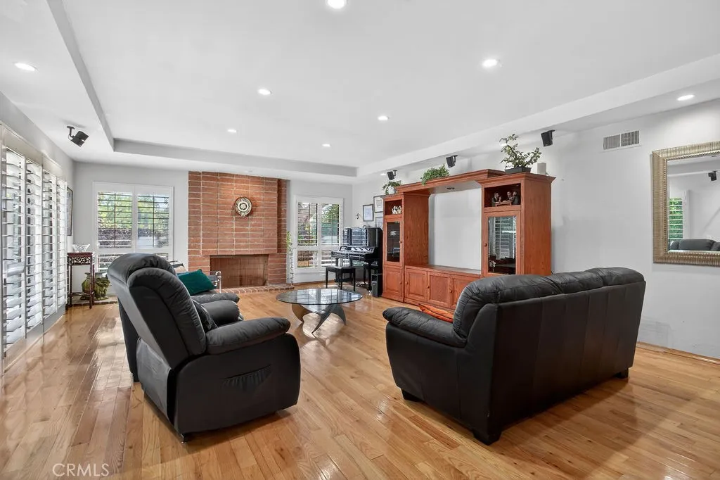 Tucked away in the coveted hills of Villa Park, this sprawling estate is loaded with opportunity and charm. Situated on a spacious and highly desired 21,000 square foot lot, this almost 4000 square foot home enjoys a single-story floor plan with functional second-level bonus room. An inviting side lit double door entry gives way to a spacious, and airy formal entry. Elegant stone floors lead to a cathedral ceiling living room complete with brick finished fireplace, soaring ceilings, dual sliders, and art nooks. The family room is finished with hard wood floors, coffered ceilings, wet bar with bar top seating, impressive brick fireplace, and oversized windows, giving this room a bright and inviting feel. Kitchen is a side loaded galley style with ample space, breakfast nook with back yard access slider, and convenient location between the family room and large dining room. Dining room is open with the living room, making it perfect for those formal functions or entertainment. The dining room also boasts elegant, coffered ceiling detail, recessed canned lighting, hardwood floors, and picture window views of the lush backyard. The primary bedroom is spacious and open with large slider for backyard access, large walk-in closet, dual vanity sinks, beauty desk, and seamless glass shower. The second level bonus room provides ample space for theatre room, office space, or additional bedroom options. It also enjoys a viewing deck, built in cabinets, and coffered ceilings. All secondary bedrooms are spacious and functional. This home enjoys tons of natural light and an open airy feel