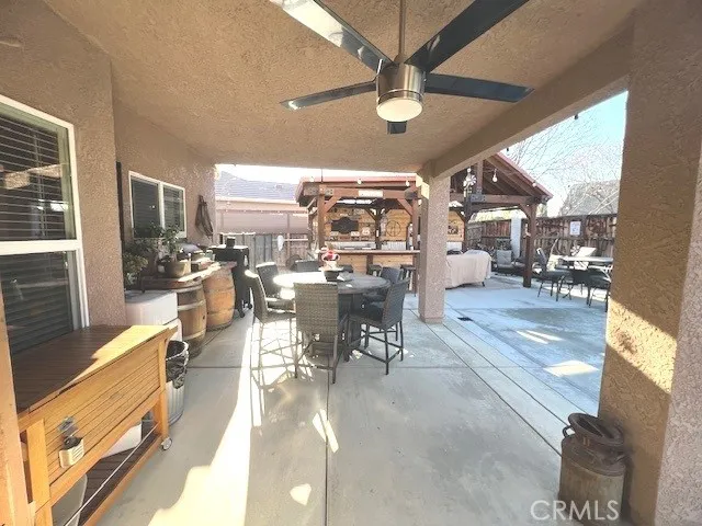 Welcome to this stunning 4-bedroom, 3-bathroom home where luxury meets every day comfort. Upon arrival you will find a large front porch sitting area and from the moment you step inside, youll notice the thoughtful layout and high-end finishes that make this house a true home. Enjoy an inviting entry that opens to a formal living room, perfect for quiet conversation. The heart of the home is the expansive family room, featuring vaulted ceilings, a cozy upgraded fireplace and ceiling fan. Open-concept kitchen is a chefs dream, boasting sleek granite countertops, a designer backsplash, ample lighting and large sun-lit dining area. The primary suite serves as a private sanctuary, offering a spacious layout and spa-inspired bathroom complete with a Jetted tub, separate shower and generous walk in dual closets. Each additional bedroom is well proportioned with large closets and ceiling fans, ensuring comfort for family and guest. You will also find granite countertops in all the bathrooms, HVAC system for year-round climate control plus there is SOLAR, indoor laundry room with plenty of cabinet storage, carpet and tile throughout and so much more. Step outside into your personal oasis! The backyard is designed for ultimate entertainment, featuring in-ground pool with water features and a massive opened beamed covered patio with ceiling fan and impressive outdoor kitchen that comes fully equipped with grills, mini-fridge and a sink-perfect for hosting summer BBQs. 3 car attached garage, storage shed and the rare convenience of covered RV parking! Dont miss the opportunity to own
