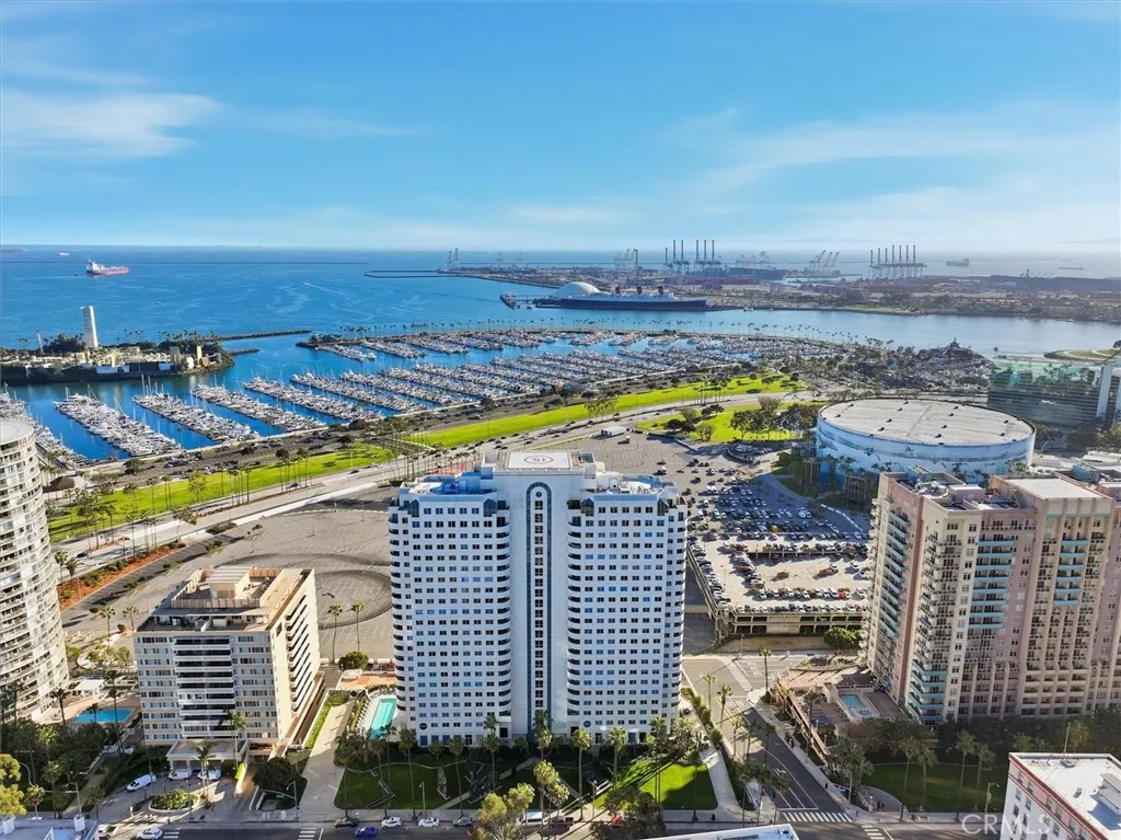 Welcome to Harbor Place Tower, a premier luxury high-rise in the vibrant heart of Downtown Long Beach. This beautiful 2-bedroom, 2-bath residence offers an elevated coastal lifestyle with sweeping ocean views, exceptional amenities, and an unbeatable location with a front row seat to the Long Beach Grand Prix!! As you enter, you are welcomed by the bright, open-concept floor plan designed for effortless living and entertaining. The spacious living and dining areas are filled with natural light and showcase stunning views of the Pacific and the iconic Queen Mary. A private balcony provides the perfect setting to unwind and enjoy the ocean breeze. The kitchen is thoughtfully appointed with plenty of cabinetry, stainless-steel appliances, and a convenient breakfast bar for casual dining. The expansive primary suite is a true retreat, featuring dual mirrored closets, and a spa-inspired ensuite bath complete with a soaking tub, separate shower, and dual-sink vanity. A versatile second bedroom with custom office-style built-ins, an additional bath, in-unit laundry, and two tandem parking spaces. Residents of Harbor Place Tower enjoy resort-caliber amenities, including a sparkling pool and spa, outdoor fireplace lounge, built-in BBQs, promenade deck, fully equipped fitness center, sauna, and 24/7 security with lobby attendant. Ideally situated near the Long Beach Convention & Entertainment Center, the The Pike Outlets, Shoreline Village, miles of waterfront bike paths, acclaimed dining, boutique shopping, the beach, Metro access, and major freeways - this is luxury coastal living
