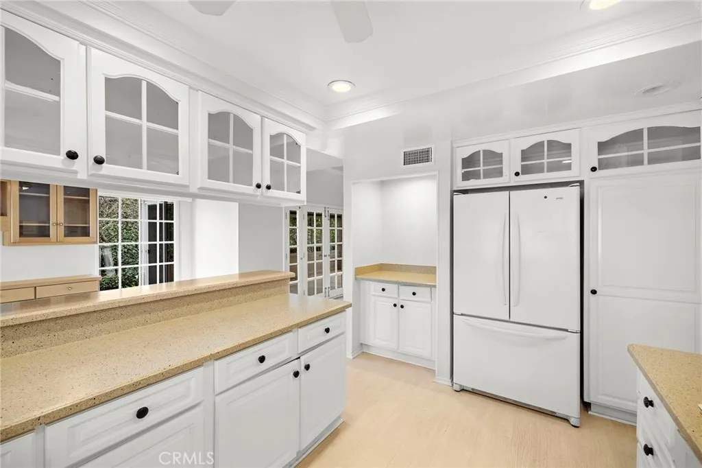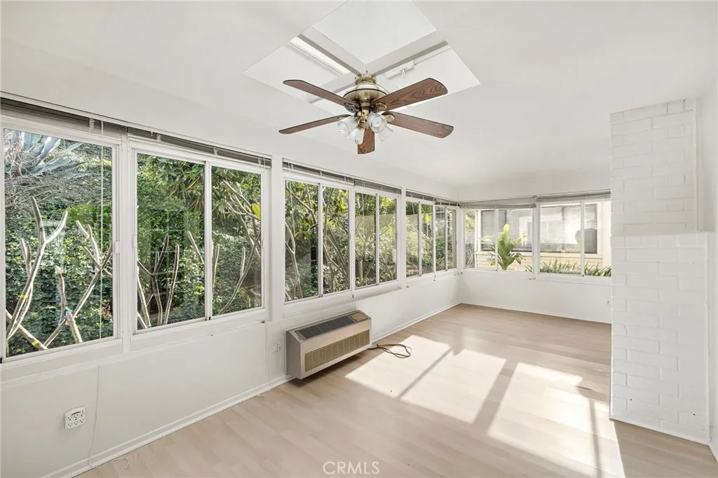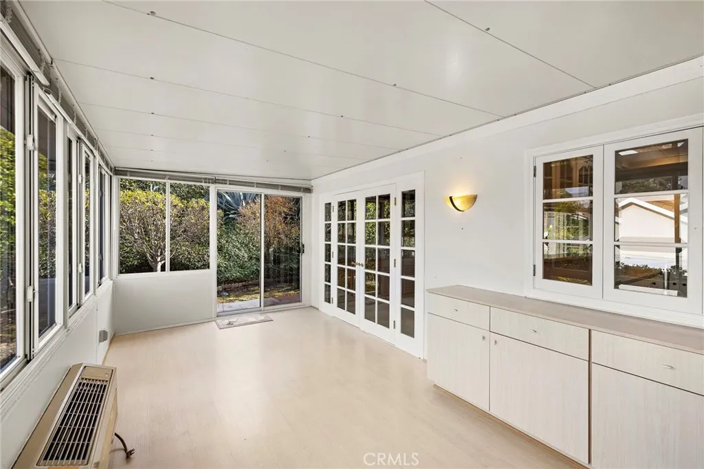 Welcome to 5092 Tero, a beautifully expanded residence nestled within the prestigious Gate 11 enclave of Laguna Woods. This highly sought-after Villa Terraza model offers approximately 1,950 square feet of thoughtfully designed living space, featuring two bedrooms, two bathrooms, and three fully enclosed additions that create a rare sense of openness, versatility, and comfort. Soaring vaulted ceilings enhanced by solar tubes bathe the home in natural light, while the elegant living room is centered around a warm wood-burning fireplace, creating an inviting atmosphere for relaxating or entertaining. Double French doors lead to a spacious, versatile room, ideal for hosting gatherings or intimate dinners. The enclosed additions provide remarkable flexibility, easily accommodating a sophisticated home office, sunroom, fitness studio, creative space, or private retreat allowing the home to evolve with your lifestyle. Built-in cabinetry throughout offers exceptional storage while maintaining a clean, refined aesthetic. The gated front courtyard is a true sanctuary, featuring lush landscaping that creates a serene, resort-like setting for morning coffee or peaceful evenings under the California sky. The primary suite is equally impressive, highlighted by an oversized, walk-in closet designed for maximum organization and functionality. A rare, fully paid solar system powers the central air conditioning, delivering both environmental efficiency and meaningful utility savings Additional features include a dramatic double-door entry, a two-car garage, and a quiet private street locat