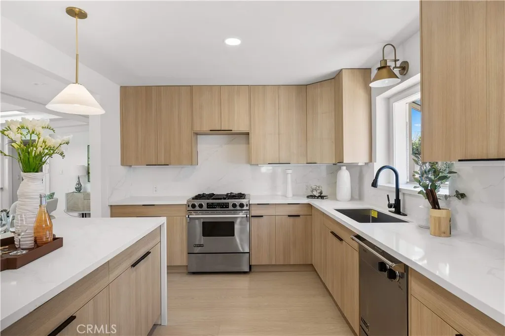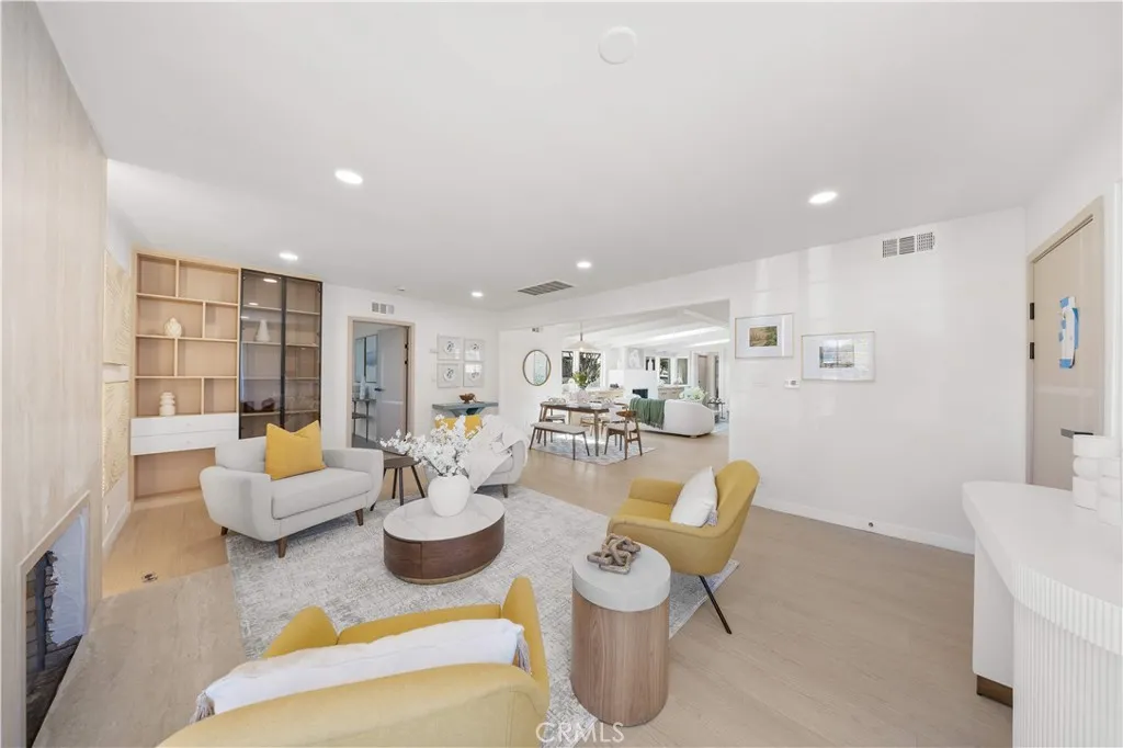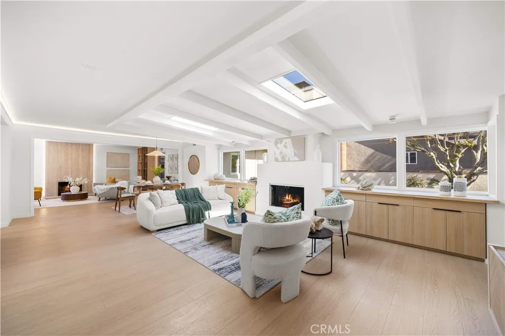 Welcome to 934 E Rose Ave a fully reimagined single-level residence where thoughtful design, natural light, and modern comfort come together seamlessly. Upon entry, you are welcomed into a warm living room anchored by a sleek fireplace and framed by custom built-in cabinetry, offering both architectural character and functional elegance. Clean lines, wide-plank flooring, and abundant natural light create an immediate sense of calm and home. The layout flows effortlessly into a spacious dining area and a beautifully redesigned kitchen featuring custom cabinetry throughout, minimalist wood finishes, and a generous center island designed for gathering. Every detail has been curated to blend warmth with modern simplicity. Just beyond the dining room is an inviting family lounge highlighted by dramatic double skylights, exposed ceiling beams, and a second fireplace creating a cozy yet airy retreat filled with natural light. From this family room, sliding access opens directly to a private courtyard, offering a seamless indoor-outdoor connection ideal for morning coffee or evening relaxation. The home features three bedrooms and three full bathrooms, including two spacious primary suites a rare and highly desirable configuration in the neighborhood. The spa-inspired primary bath showcases a large walk-in shower and a freestanding soaking tub, delivering a true retreat experience. Set on an expansive 8,032 sq ft lot, the backyard is designed for California outdoor living. A long, modern rectangular pool is framed by clean landscaping lines and low-maintenance turf, creating a r