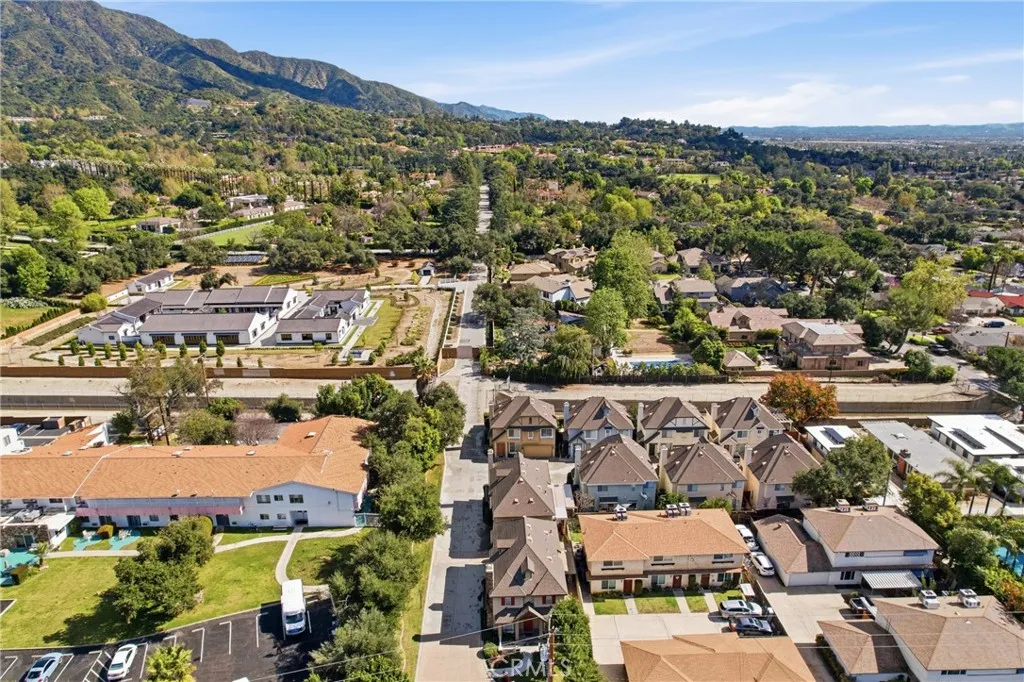 Welcome to this beautifully maintained two-story end-unit stand-alone townhouse-style PUD built in 2001, offering the privacy of no attached walls and no rear neighbor. With low HOA dues and a prime location close to schools, Old Town Monrovia, and easy freeway access, this home blends comfort, convenience, and value. The exterior features a classic clip-gable roof and a charming arch-top gable vent, setting the tone for the thoughtful design inside. Step into a good-sized living room with plush carpeting, a striking stone-surround fireplace with hearth, and a handsome wooden staircase that anchors the space. The formal dining area sits just off the kitchen and showcases stone tile flooring, a stained-glass chandelier, and sliding glass doors that open to a private, fenced, and landscaped rear patioperfect for outdoor dining and relaxing. The kitchen offers ample wood cabinetry, ceramic countertops, recessed lighting, a charming garden window, and included stainless steel appliances. A separate laundry area is conveniently located off the kitchen on the service porch with access to the patio. Downstairs also features a powder room with a pedestal sink. Once upstairs, you'll find a large landing with linen cabinet storage, which leads to four bedrooms, including a generous primary suite with ceiling fan, walk-in closet, and an impressive en-suite bathroom featuring a rustic wood dual-sink vanity with granite countertops, decorator sconces, stone flooring, and an XL smart shower system complete with pebble flooring, bench seating, and decorative stone tile ribbon detail. A fu