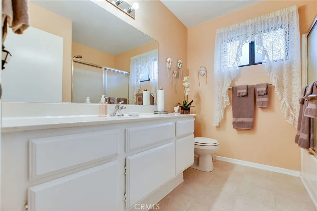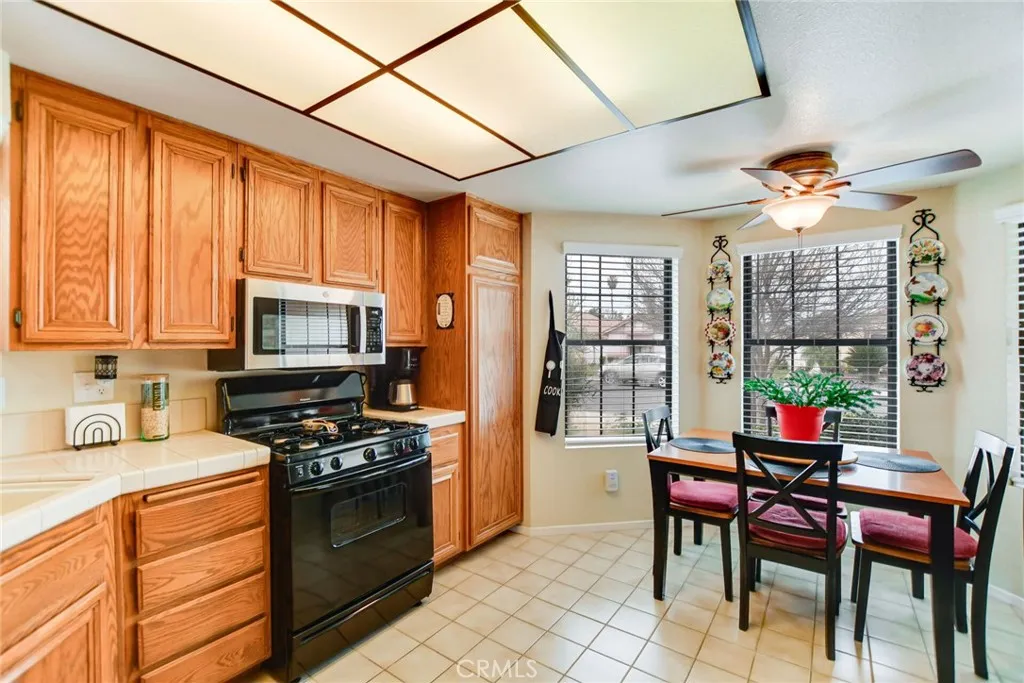 Welcome to this great 55+ home in Hemet del Sol, this senior community has low HOA dues of only $60/YEAR and provides great affordable senior living. This property features 2 bedrooms and 2 baths, primary bath has a walk in shower, guest bath is shower over tub, a spacious living room with vaulted ceilings and a gas fireplace to take the chill of those brisk winter days. The kitchen features ample cabinet space, tile counters, the frig is included and a new microwave and an eating area in a bay window in the kitchen for casual meals. This property also includes a bonus room off the master bedroom that is not included in the square footage but provides additional space for reading or relaxing or possible guest accommodations. There is a private covered back patio area that is a great spot to sit outside for a cup of coffee or a glass of wine. The 2 car garage is accessed of the back alley and has direct access to the house, washer and dryer also included. There are ceiling fans throughout, all walls and carpet are light and neutral. The primary bedroom has a walk in closet and the guest bedroom has mirrored wardrobe doors.