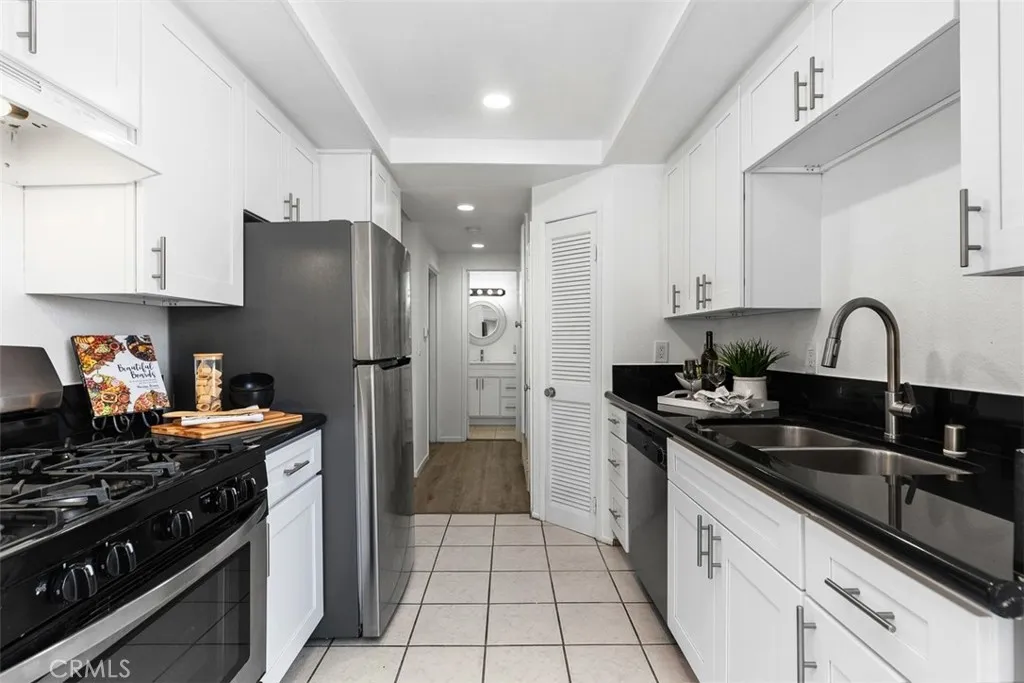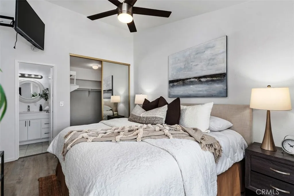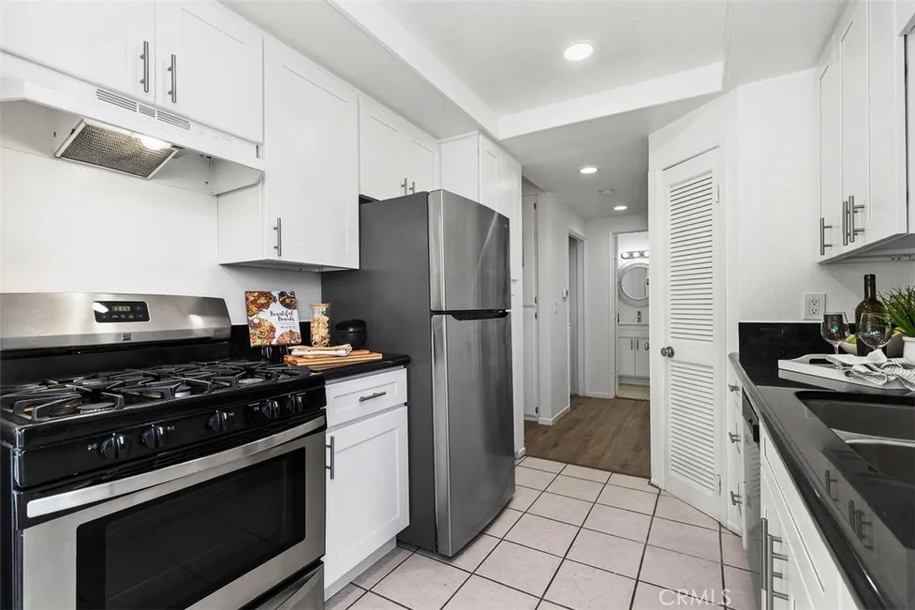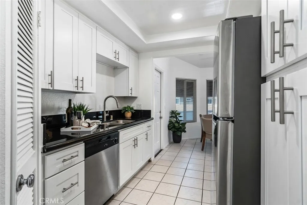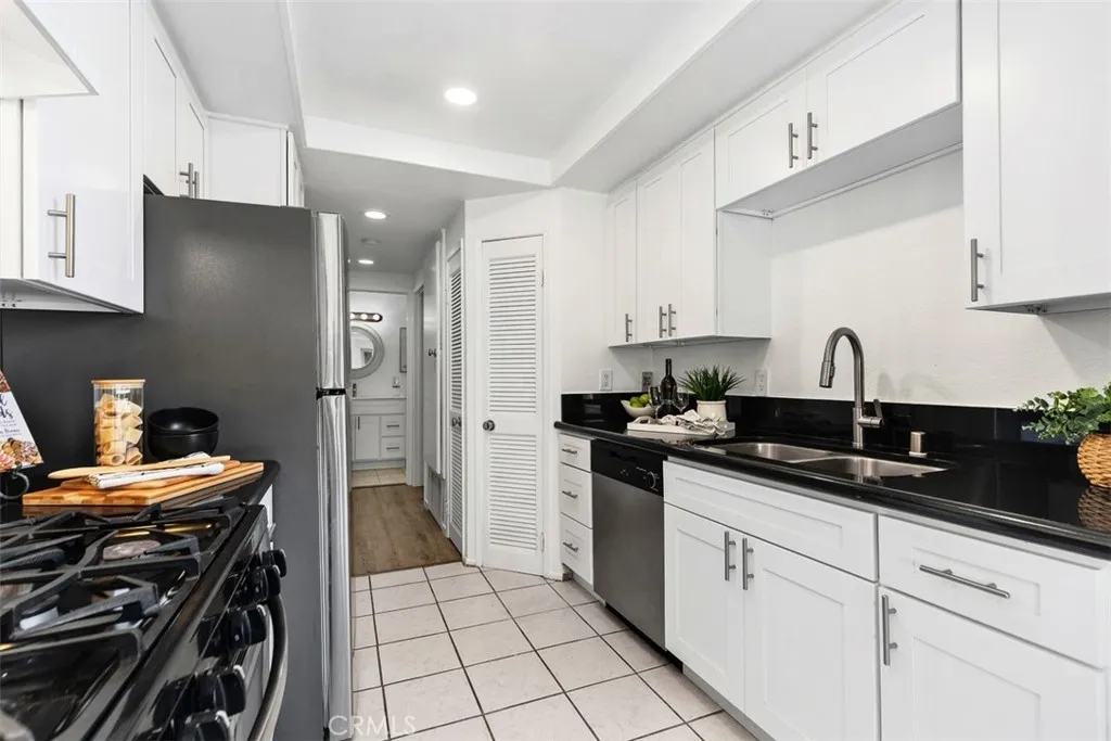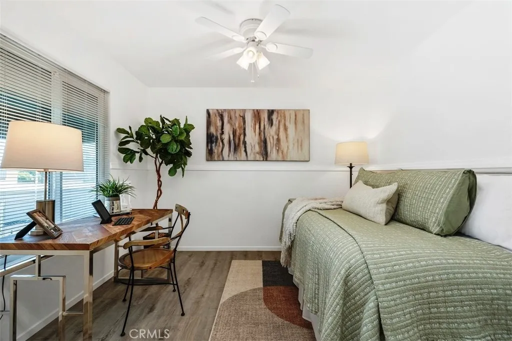 THIS SPACIOUS 843sqft. 1 Bedroom/1 Bath upper unit condo with a Den, is located in the well-maintained gated community of Park Villas. This move-in ready home features an expansive Living Room with vaulted ceilings, brand-new modern flooring in the Living Room, Den, Hallway and Primary bedroom with fresh paint throughout the home. The Den provides the perfect flexible space, ideal for a home office, guest room, yoga/fitness room or craft/hobby room. The galley Kitchen has newer white shaker cabinets, and granite countertops. The Dining Area is filled with lots of bright natural light and is open to the Living Room. The generously sized Primary Bedroom has vaulted ceilings, and a sliding glass door that leads to the private balcony. The Dual-Entry bathroom features a double vanity with a shower-tub combo. This home offers Central Air/Heat, In-Unit Laundry and a 2 Car Detached Garage. There is a community Pool, Spa and Sport court. Nicely located near shops and restaurants.