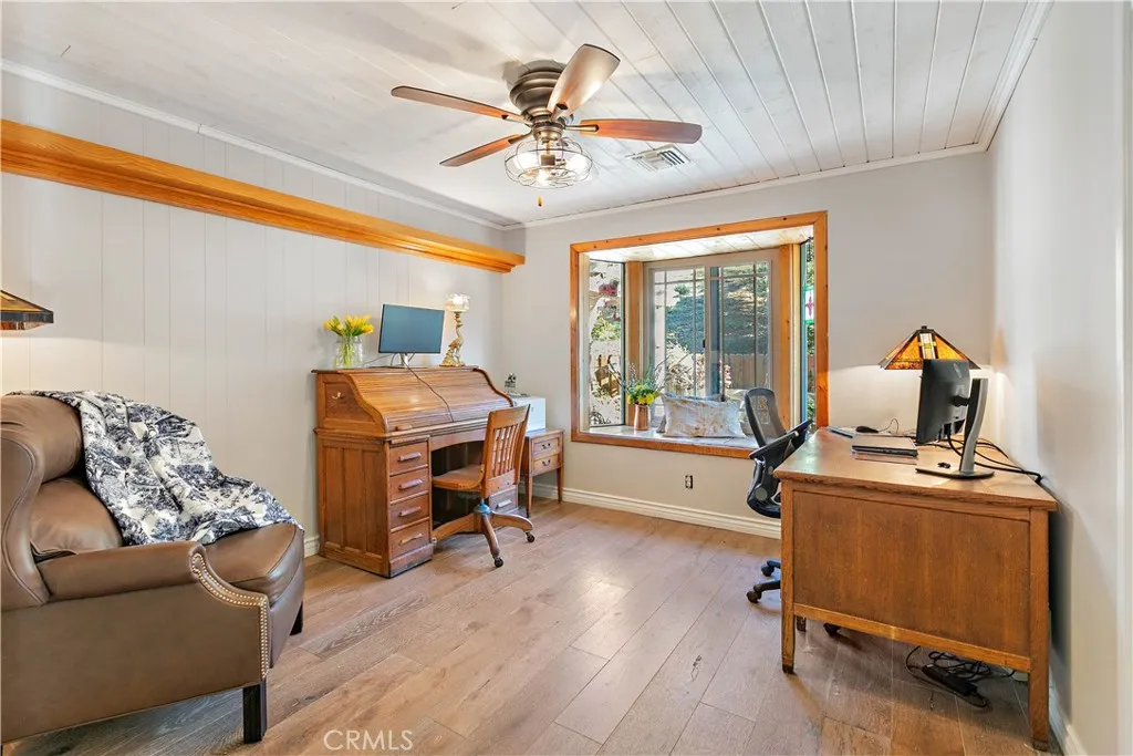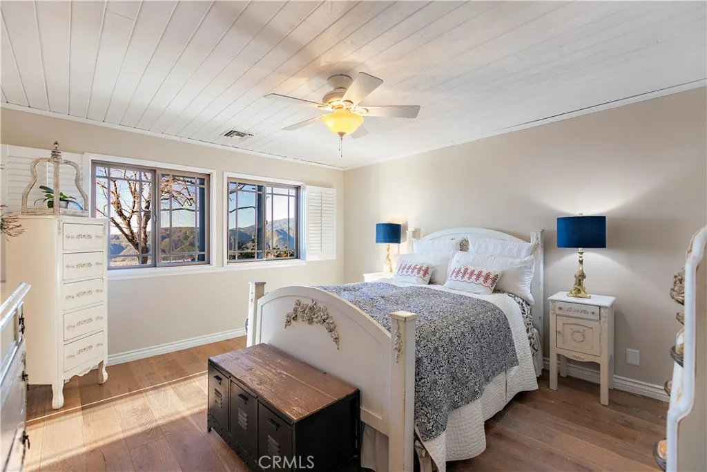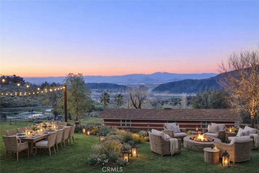 Perched high above the valley in the sought-after community of Devore Heights, Starlight Canyon Estate is a rare 12-acre sanctuary where sweeping mountain views meet glittering city lights below. This extraordinary property offers the privacy and serenity of rural living while remaining just 15 minutes from Rancho Cucamonga, 25 minutes from Redlands, and under an hour from Los Angeles. The fully remodeled 3-bedroom, 2-bath residence has been thoughtfully upgraded throughout, including new interior and exterior paint, a new roof, new HVAC system, new water heater, updated electrical panel, whole-house fan, green environmental ductwork, NASA-grade AirScrubber, whole-house fresh water drinking system, and resurfaced kitchen cabinetry. Hardwood floors flow throughout the home as sweeping valley views unfold from room to room, each offering its own stunning vantage point. The spa-like primary bathroom is a private retreat, complete with a peaceful soaking tub for ultimate relaxation. Outside, the property unfolds like a private resort. Enjoy a Seagard pool with new liner, a CalSpa hot tub that seats six, rustic gardens, multiple fenced yards, and expansive hardscaping. Equestrian and animal lovers will appreciate the livestock barn with indoor/outdoor stalls, chicken coop, training circle, and direct access to private canyon trails that connect to the greater Devore Heights and Glen Helen trail system. A natural spring feeds a private stream running through the property, adding to the estates rare beauty and tranquility. Additional highlights include a multi-panel solar system p