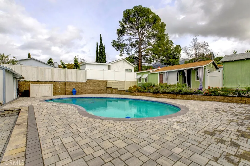 This duplex in Tujunga can be yours, offering resort-style living and income potential on an expansive 11,970 sq.ft. lot with two legal homes, a sparkling pool, and beautiful hardscaping throughout. The property also features a detached garage with potential for an ADU conversion, adding even more value and flexibility for future expansion. The front home features 3 bedrooms and 2 baths, while the rear home offers 1 bedroom and 1 bath, each with its own address and utilitiesperfect for multi-generational living, rental income, or guest accommodations. The main residence showcases warm wood-style floors, recessed lighting, and an inviting living room with large picture windows that frame serene outdoor views, flowing into an updated kitchen with white shaker cabinets, granite counters, subway tile backsplash, and stainless steel appliances. A stunning primary suite highlights rich wood beam details, expansive floor-to-ceiling windows overlooking the pool, and direct access to the backyard for a true indoor-outdoor retreat, while additional bedrooms and remodeled baths with modern vanities and glass-enclosed showers provide comfort and style for family or guests. Outside, the property transforms into an entertainers paradise with an oversized paver patio, a generously sized pool, and a covered outdoor lounge complete with ceiling fan, heaters, and space for TV and seating ideal for gatherings day or night. Ample driveway parking and manicured landscaping complete this rare opportunity in a highly desirable Tujunga neighborhood.