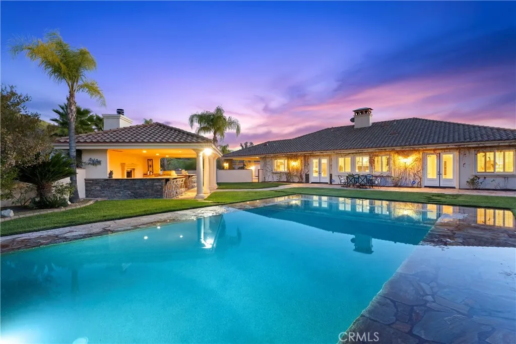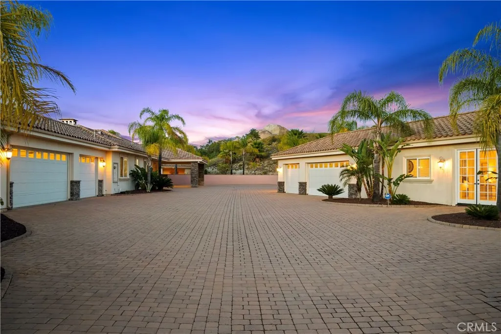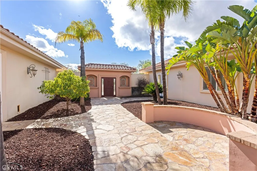 This is a rare opportunity to own a private Wine Country estate that seamlessly blends natural beauty, usable land in one of Temeculas most desirable locations.Wake up to hot air balloons rising in the early morning sky and unwind with breathtaking sunsets over your own private estate! Spanning approximately 5,507 square feet, this custom-built 5-bedroom, 5-bath residence sits atop 9.15 acres of scenic land. A detached 1,000-square-foot guest villa (1 bed, 1 bath ADU) with ideal flexibility for multi-generational living, guests, rental income, or on-site staff.A long custom paver driveway leads up the hill to the home, creating a grand sense of arrival. At the entrance, youre welcomed by an expansive courtyard-style setting (atrium), allowing natural light to pour into the surrounding rooms and enhancing the homes bright, airy feel throughout.Inside, soaring high ceilings and crown molding elevate the space. The open-concept kitchen and family room form the heart of the home, designed for both entertaining and everyday living. The chefs kitchen features high-end stainless steel appliances, including matching Viking refrigerator and freezer units, a Fisher & Paykel 6-burner range, and a Thermador oven. The kitchen opens seamlessly to the family room with custom cabinetry and a fireplace, while formal living and dining rooms with elegant spaces to host guests.The bedroom layout is thoughtfully designed for privacy and comfort. In addition to the magnificent primary suite, two secondary bedrooms share a well-appointed Jack-and-Jill bathroom, while two additional bedrooms each