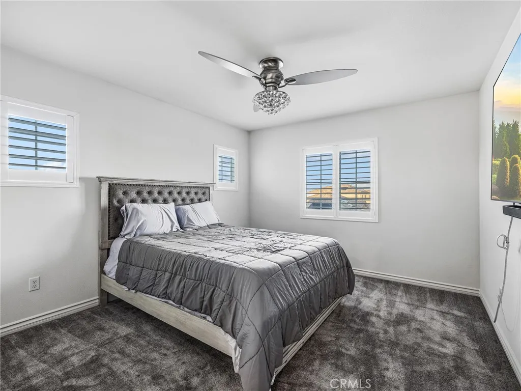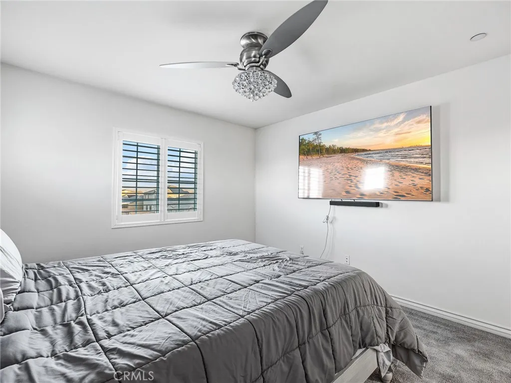 This nearly New two-story home combines modern luxury with smart living and energy efficiency. Featuring five bedrooms and 3 bathrooms, it comes partially furnished with TVs and sound bars in every bedroom, plus a washer, dryer, and smart refrigerator ALL INCLUDED!!! The home boasts FULLY PAID solar panels, a soft water system, and a tankless water heater for long term savings and comfort. Elegant plantation shutters on every window, a convenient upstairs laundry room, and loft area for an in-home office space or the coolest hangout on the block. Located near a park, this move-in-ready home offers the perfect blend of style, technology, and convenience.