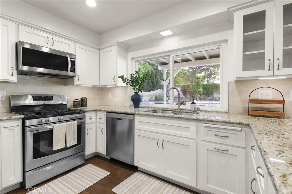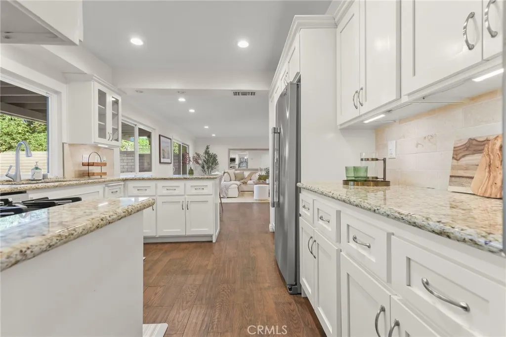 This turnkey 5-bedroom home combines charm and convenience. The double-door of the foyer opens up to a smart floor plan; on one side the bright living/dining room on the other the spacious family room and the hallway leading to the main-floor bedroom and bathroom. Upstairs, a private primary suite awaits alongside three additional bedrooms and a full bathroom. The kitchen offers granite countertop and soft-close cabinetry. Dual-zone (upstairs/downstairs) HVAC provides added energy efficiency. And the backyard is perfectly suited for summer entertaining; al fresco dining and pool parties. ---This gem is located in a tranquil suburb near multiple parks among them: the Stoney Point Park, a destination for hiking, horseback riding, and rock climbing; and the scenic Chatsworth Park South featuring walking tails, playgrounds, picnic tables, basketball & tennis courts, etc. Yet only 3 miles from shopping and dining at The Vineyards at Porter Ranch. ---In addition, the property is conveniently a mere 1.4 miles from the 118 FWY access, and 1 mile from the Chatsworth Amtrak/Metrolink Train Station. ---Act fast!