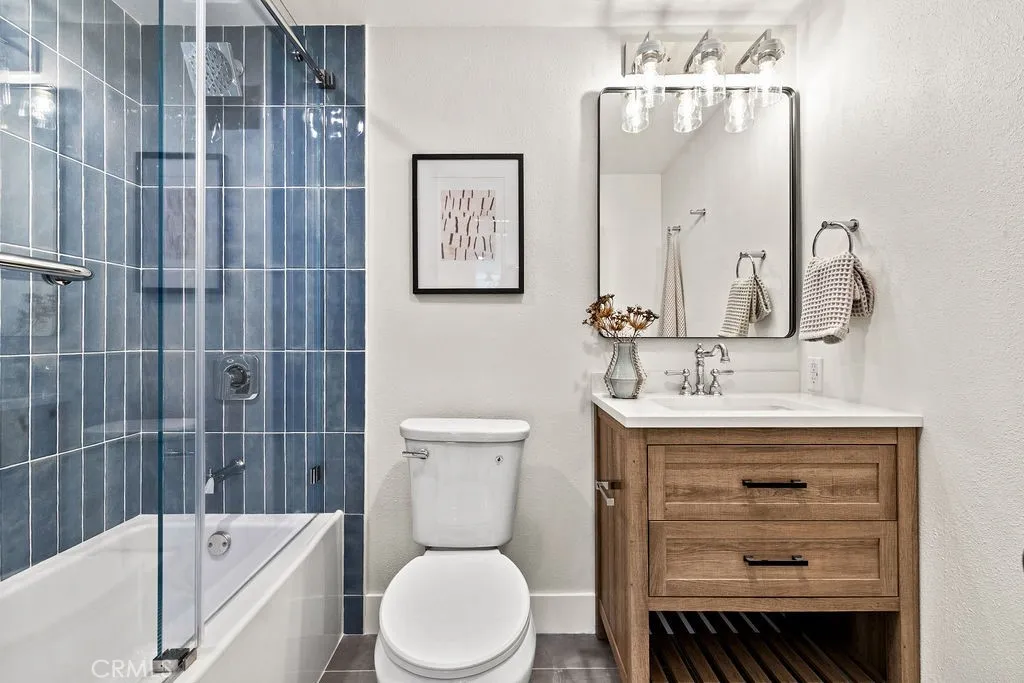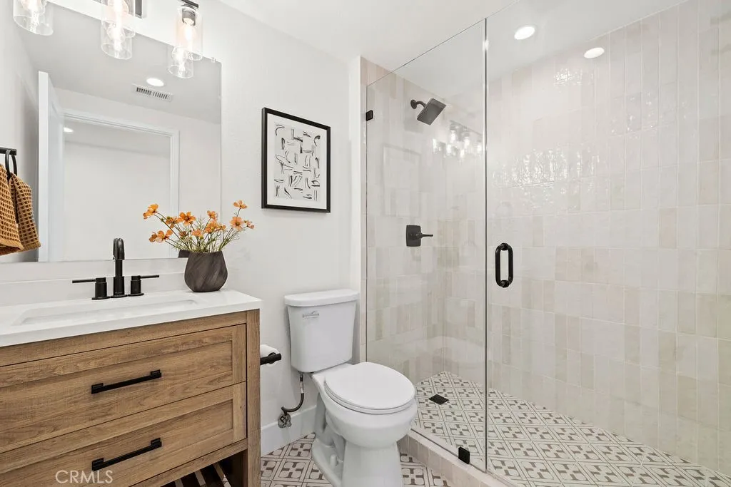 Tucked away on a quiet cul-de-sac in the highly desirable South Coast Metro area, this completely remodeled 5-bedroom, 3-bath residence offers approximately 2,400 square feet of thoughtfully designed living space, and is perfectly suited for comfortable everyday living. Step inside to a bright open-concept floor plan highlighted by luxury plank flooring, vaulted ceilings, and an abundance of natural light that fills the living room, accented by a cozy fireplace. The formal dining room features new French doors that open to the spacious wrap around yard, creating a seamless indoor-outdoor connection. The beautifully renovated kitchen has been redesigned with modern finishes, showcasing striking two-tone cabinetry, sleek quartz countertops, stainless steel appliances, designer fixtures, generous counter space and a functional layout making it as practical as it is stylish. The kitchen flows seamlessly into the adjacent family room, creating a warm and inviting space ideal for everyday use and effortless entertaining. Open the newly expanded sliding doors into your private backyard retreat, where the best of Southern California living comes to life. A sparkling in-ground pool invites you to cool off on warm summer afternoons, while the beautifully designed outdoor spaces create the perfect setting for entertaining. Gather with friends for poolside dining, or relax beside the oversized fire pit with built-in seating, the ideal spot for evening conversations and unforgettable nights under the stars. A main-level bedroom and full bathroom provide excellent flexibility for guests,