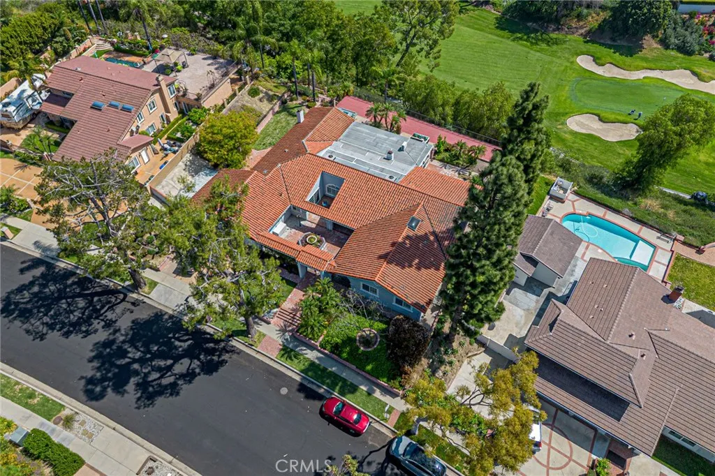 Rare opportunity to own a true single-story Spanish-style home in the prestigious North Friendly Hills community overlooking the Friendly Hills Golf Course (4th hole). Featuring 4 bedrooms, 4 bathrooms, and approximately 3,808 sq ft, this home offers a spacious and functional layout ideal for everyday living and entertaining. Privately gated, the home welcomes you into a charming courtyard with a custom planter centerpiece. Inside, the layout is enhanced by arched architectural details and travertine and wood flooring throughout. The floor plan includes a formal living room and family room with fireplaces, while the formal dining room is currently used as an office. The upgraded kitchen features an oversized island with granite countertops, designer drop lighting, and seating, along with dual sinks including a farmhouse-style sink, gas cooktop, stainless steel appliances, built-in desk, garden window, and an adjoining eating area. The kitchen opens to the living areas, and the family room features wood-beamed ceilings, a fireplace, and French doors leading to the outdoor spaces. A standout feature is the light-filled enclosed sunroom-style bonus space, ideal for a gym, game room, or additional living area. Situated on a 16,711 sq ft lot, the backyard features a built-in BBQ, spacious patio areas, grassy area, and a wood deck with golf course views. The primary suite offers a walk-in closet, a bathroom with separate shower and tub, and direct backyard access. Additional features include a three-car garage with epoxy-coated flooring and a separate storage room, crown molding,