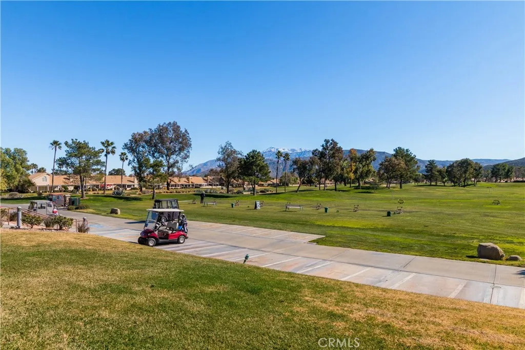 Are you looking for senior living in Banning's prestigious Sun Lakes County Club?? Look no further as this 3 bed, 3 bath home is located right on the second tee box with views front and back of the golf course or local snow capped mountains of San Gorgonio! Upon entering you'll notice a spacious semi open layout with large vaulted ceilings, cozy fireplace, carpet and laminate flooring, plantation shutters and a direct view point straight out to the golf course. New dual pane white vinyl windows and doors help elevate your energy efficiency and maximize your golf course views! Imagine preparing meals in your kitchen enjoying the views of green grass, plenty of cabinet space with Corian counters, a newer stainless steel refrigerator, gas cook top, and classy pendant lights right over the peninsula. One of two spare bedrooms located on the main floor is well appointed in space with planation shutters, upgraded carpet, ceiling fan with light, walk-in closet and direct access to a completely updated bathroom with new vanity, tile flooring and new shower stall! Your main level master bedroom has vaulted ceilings, a large slider that lets in plenty of natural light and leads directly out to the back patio, walk in closet and a again a fully updated bath complete with dual sinks, new vanity and tile flooring and large walk in shower stall. Upstairs hosts a large open loft with built in shelving, a third full bath with granite counters and tub/shower combo and your 3rd bedroom perfect for guests! The backyard offer's a full width AlumaWood patio cover perfect for those warmer summer