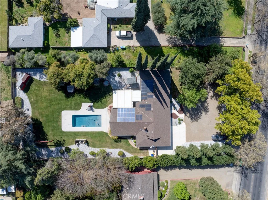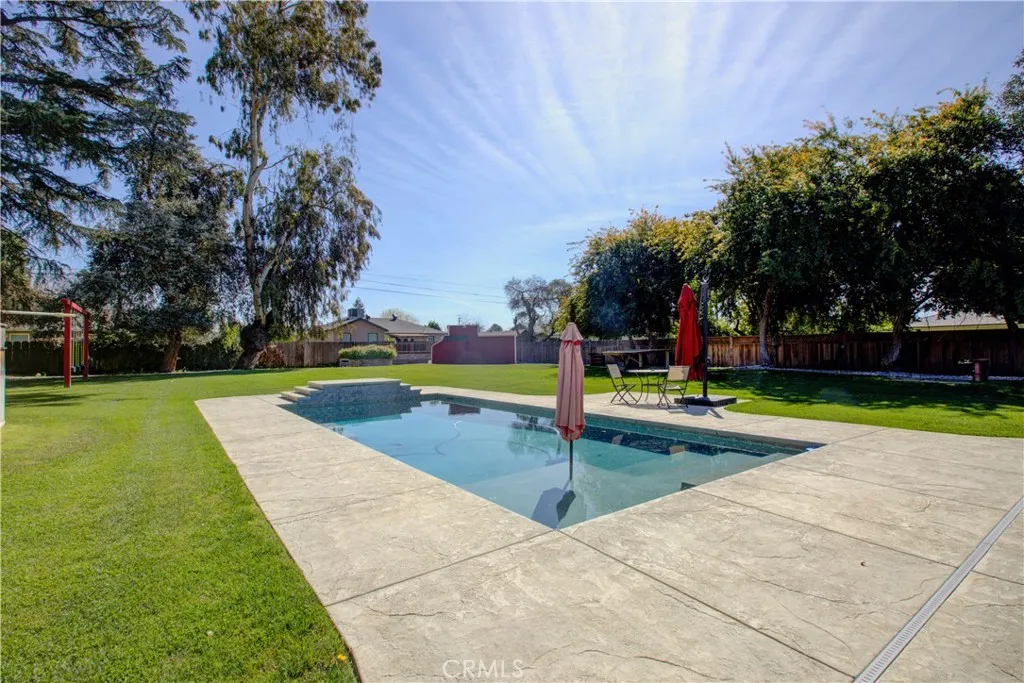 Welcome to this spacious and beautifully maintained 3-bedroom, 3-bath home located in the heart of Atwater featuring a heated Gunite pool and exceptional upgrades throughout! This inviting residence offers an open living space where the living room flows seamlessly into the kitchen and dining area, highlighted by a charming wood-burning brick fascia fireplace. The kitchen features quartz countertops, stainless steel appliances, a gas 5-burner stove, barn sink, breakfast bar, and abundant cabinet space for storage. The home offers two master bedrooms with closets designed by California Closets for optimal storage. The oversized primary suite includes a desk area, walk-in closet with shelving designed by California Closets, and an extra-large primary bathroom featuring a custom shower seat, dual sinks, quartz counters, and newer tile flooring. Additional bedrooms are generously sized with ceiling fans and ample storage. A standout feature of the home is the stunning great room with vaulted wood-paneled ceilings, French doors and windows, and a built-in wet bar. Step outside to a beautifully landscaped backyard designed like a private park. Enjoy the newer heated 4-year-old gunite lap pool with fountain features, stamped concrete covered patio areas, horseshoe area, and mature landscaping that creates a resort-style setting. Additional highlights include solar panels, plantation shutters, dual-pane windows, two central HVAC units, a new sewer line, water softener system with reverse osmosis, updated electrical, a finished 2-car garage, and plenty of open parking. This exceptio