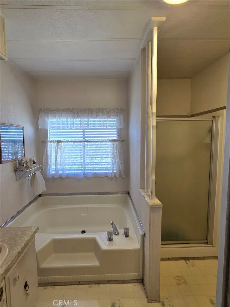 The property is located in the beautiful 55+ community of Golden Coach Manor in Hemet. It offers two bedrooms and two full baths, the master bath features a shower and sunken tub. The kitchen flows into the family room and living room and also includes a built in breakfast nook. The spacious living and dinning room features built-in China cabinets with a custom mirror and extra storage space. Both bedrooms have large closets with additional storage on the side, along with extra storage in the hallway. The property also includes an enclosed side porch/sunroom and two storage sheds, one of which can be used as a workshop. There's no need to use the community laundry, as the home offers it's own laundry room with washer and dryer included. Additional features include a newer HVAC system, two car covered parking with a patio. A security door and flood lighting. A small backyard allows for easy maintenance, and the low space rent of rent of $635.00 per month. The community also offers a heated pool and spa, a dog park, shuffleboard courts and a clubhouse with billiard and card room. This is the perfect home, offering both lifestyle and community all in one-make this your new home.