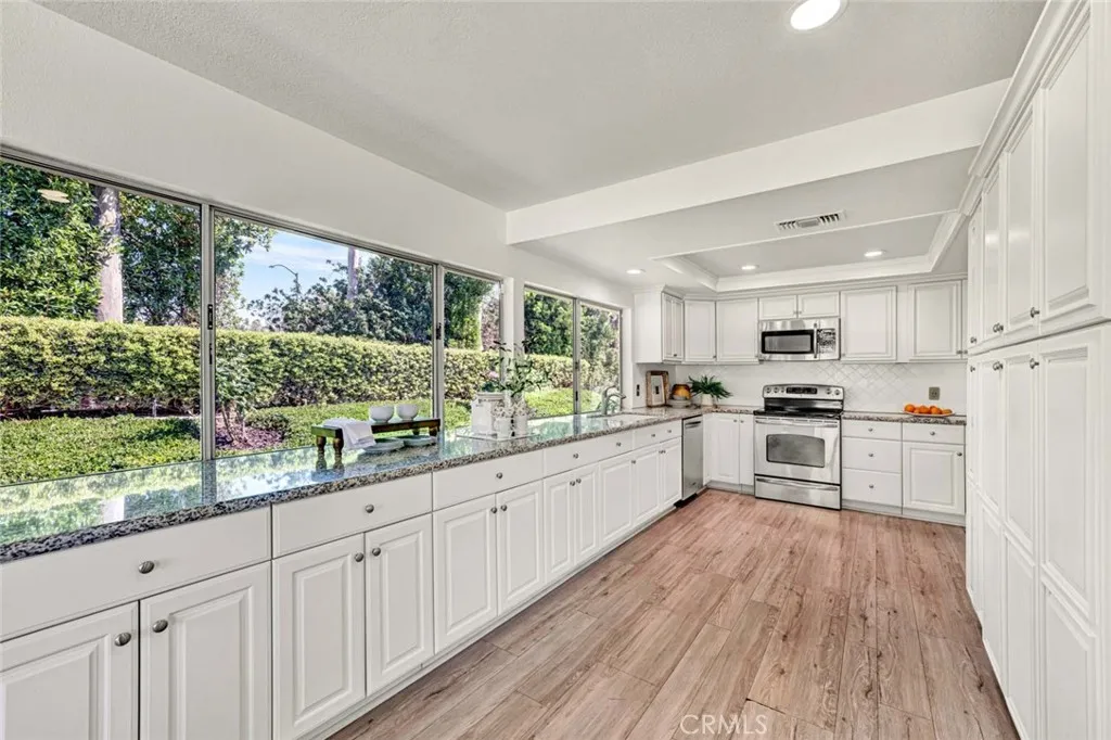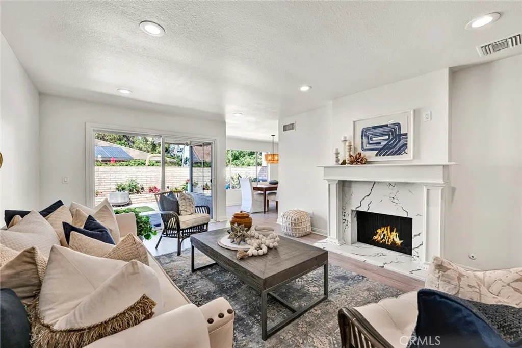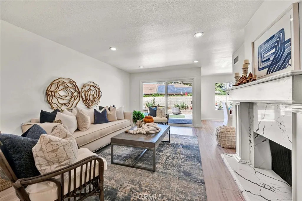 Now offered at a newly improved price, welcome to 5 Caroban exceptional end-unit home on a cul-de-sac in the desirable Terrace community of University Park. Offered for only the second time, this residence features the largest Cambridge floor plan with 3 bedrooms and 2 baths, combining privacy, thoughtful upgrades, and energy-efficient living. Set along the community perimeter, the home enjoys open space, mature trees, and no direct neighbor on one side. This location offers enhanced privacy with some nearby freeway presence; a landscaped sound wall provides added separation, and many appreciate the trade-off for increased openness and light. Recent improvements include a newer tile roof with owned solar, delivering electric bills averaging approximately $17/month so far this year. Additional upgrades include fresh interior paint, new designer carpet, waterproof laminate flooring, updated landscaping with exterior lighting, and an energy-efficient 4-ton HVAC system. The updated kitchen features newer cabinetry, countertops, and appliances, opening to a bright dining area. The spacious living room offers a fireplace, wet bar, and direct access to an expansive patioideal for indoor-outdoor living and entertaining. The primary suite includes dual closets and an updated bath with a remodeled walk-in shower and solar tube. Secondary bedrooms feature new carpet, with one offering French doorsideal for an office or flex space. Enjoy two private outdoor areas, including a courtyard patio and a larger professionally landscaped patio off the main living area. Additional highlights in