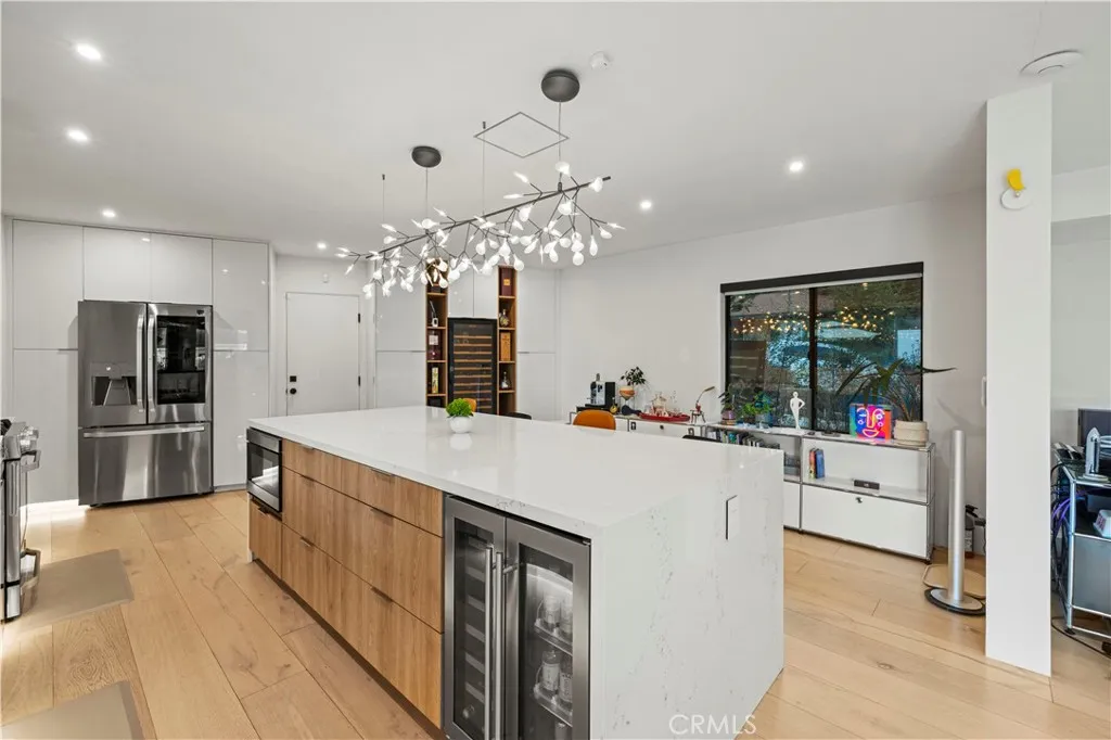 Tucked away in a desirable Studio City neighborhood, this fully updated 3 bedroom, 2.5 bathroom single story home offers a seamless blend of modern design and functional living. The open concept layout features high ceilings, wide plank flooring, and abundant natural light throughout. The main living spaces flow effortlessly into a remodeled kitchen complete with a large center island, custom cabinetry, high end appliances, and a built in wine display, ideal for both everyday living and entertaining. Expansive sliding glass doors open to a private backyard designed for indoor outdoor living, featuring a pool and spa, fire feature, multiple seating areas, views, and a covered patio for dining and gatherings. The primary suite offers direct access to the backyard along with a spacious layout and a remodeled bathroom with soaking tub, oversized shower, and modern finishes. Two additional bedrooms are well sized and versatile for family, guests, or office use. Located just moments from Ventura Boulevard, this home provides convenient access to shopping, dining, and entertainment while maintaining a private residential setting.