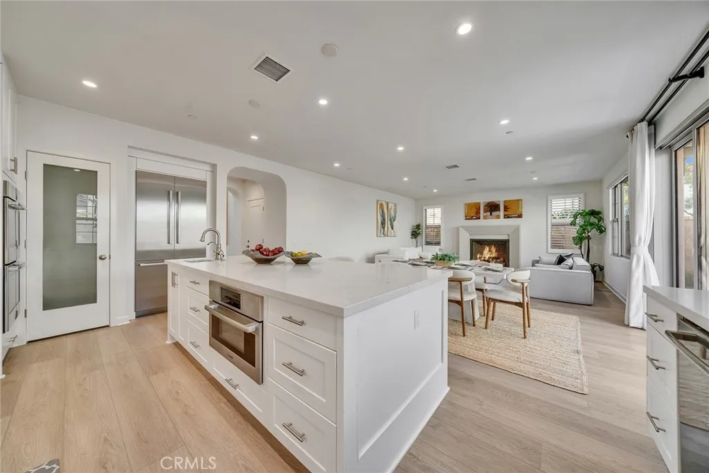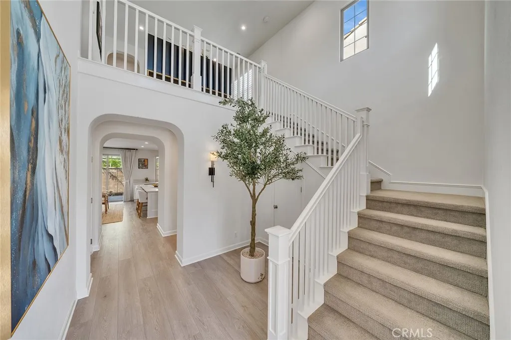 Fabulous layout and exceptional upgrades make this home truly stand out. A charming front porch welcomes you in and adds to the homes beautiful curb appeal. Step inside to a gracious entry with dramatic high ceilings that create an immediate sense of space and elegance, flowing seamlessly into the kitchen and living areas. The spacious downstairs offers plenty of room for family and friends to gather comfortably. The living room features a grand fireplace, perfect for cozy evenings, entertaining guests, or simply enjoying a quiet moment in a warm and inviting setting. The kitchen is absolutely stunning, thoughtfully designed with Bosch stainless steel appliances, including a built-in Bosch refrigerator. Quartz countertops with a full-height backsplash, a frosted-panel pantry door, and soft-close drawers and hinges complete the space, making this kitchen as functional as it is beautiful. Upstairs, a generous loft provides flexible living space that can serve as a family room, homework area, media room, or anything that fits your lifestyle. The primary suite is spacious and luxurious, featuring a walk-in closet and a spa-inspired bath with a walk-in shower, soaking tub, and dual vanities. Two additional bedrooms and a full secondary bath are also upstairs, with the tub and toilet set apart in a separate area for added privacy. The upstairs laundry room is both convenient and practical, offering abundant storage and a sink to make everyday chores easier. Additional highlights include a garage EV charger outlet, fully paid-off solar panels for reduced utility costs, a whole-hou