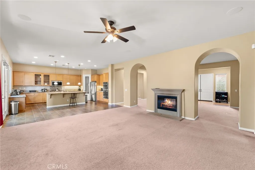 Spacious 4-bedroom, 3-bath home on a desirable corner lot that comes with a $20,000 credit towards buyer's closing costs! This single story home with a large loft space is located in the gated community of Tournament Hills in Beaumont. This home lives primarily as a single story, featuring 4 bedrooms, 3 bathrooms, an office/den, kitchen, dining area, and an inside laundry room all on the main level. Upstairs, youll find an expansive approximately 700 sq ft loft complete with two French doors that open to a private patio deck. A striking two-sided fireplace creates a warm and inviting connection between the living room and family room. The kitchen is designed for both function and style, offering plenty of granite countertop space, a large center island, and a walk-in pantry. The formal dining room and the office/den are separate and could be converted to two additional bedrooms. Additional highlights include a 2-car attached garage with direct access, plus a separate one-car garage with entry to a private courtyardperfect for added flexibility and curb appeal. Enjoy the best of comfort, space, and perhaps even a day of golf with the Morongo Golf Club a quick golf cart ride away.