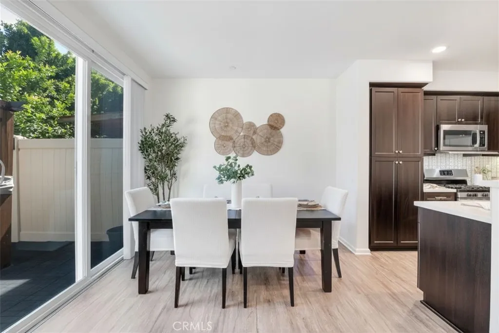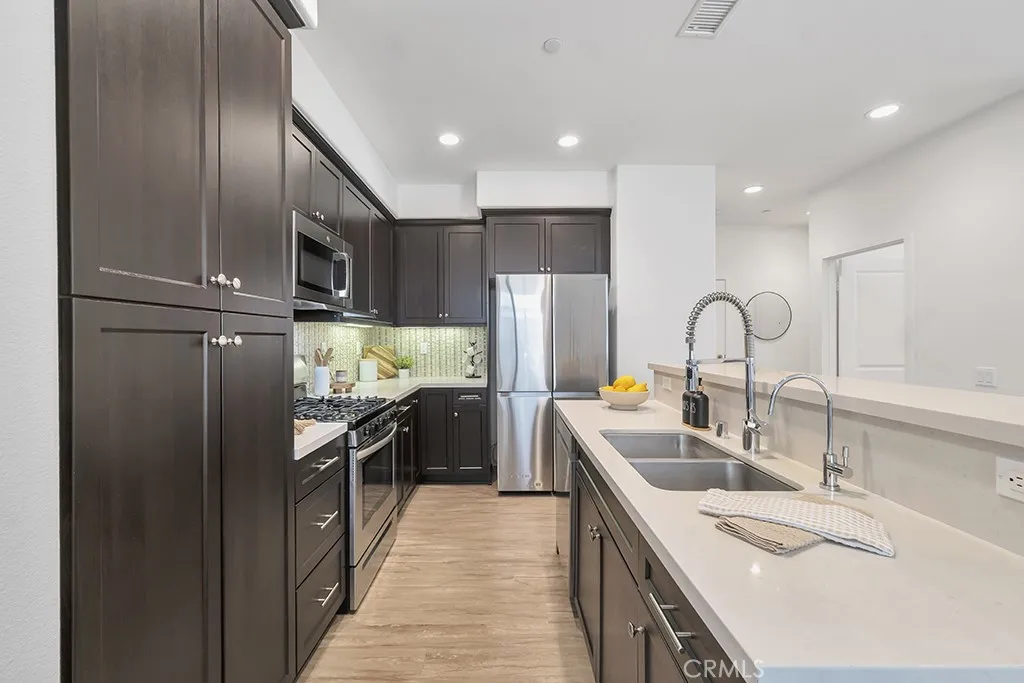 Beautiful 4-bedroom, 2.5-bath home in the sought-after Cabrillo Collection. Freshly updated with new interior paint, gorgeous vinyl plank flooring, and fresh new carpet upstairs, this home offers a bright and functional floor plan with an attached two-car garage. The kitchen features quartz countertops, stainless steel appliances, and a breakfast bar that opens to the dining area, perfect for everyday living and entertaining. Sliding doors lead to a private courtyard with a gazebo, ideal for outdoor dining and summer BBQs. Upstairs, all bedrooms are thoughtfully situated, including a spacious primary suite with a walk-in closet and en-suite bath. A versatile loft provides the perfect space for a home office, playroom, or additional living area, and the conveniently located upstairs laundry room. Additional highlights include completely recessed lighting, dual-pane windows, a tankless water heater, and leased solar. Low HOA and childrens play area all just apart of this wonderful home. Ideally located near shopping, dining, parks, and with easy freeway access.
