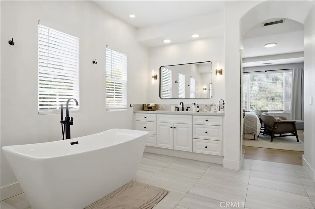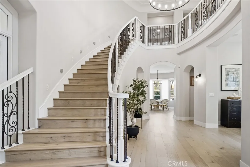 Stunning updated Spanish-style home in the highly desirable Amador neighborhood of Ashley Falls. Features include soaring 25-ft ceilings, wide-plank white oak flooring, formal living and dining rooms, private office, and a curved staircase with custom iron railings. Spacious family/game room opens to a chefs kitchen with Viking range, quartz countertops, designer backsplash, refreshed cabinetry, and butlers pantry. Upstairs offers 3 ensuite bedrooms, loft/media area, and a luxurious primary suite with fireplace, sitting area, custom closet, and spa-like bath with freestanding tub and walk-in shower. Resort-style backyard with lush landscaping, fruit trees, heated lagoon pool with rock slide, spa, outdoor shower, and Sonos sound system. Additional features include gated driveway, 3-car garage, Tesla charger, and security system. Prime location near Torrey Pines High School, Canyon Crest Academy, and premier shopping/dining at Del Mar Highlands, One Paseo, and Pacific Highlands Ranch.