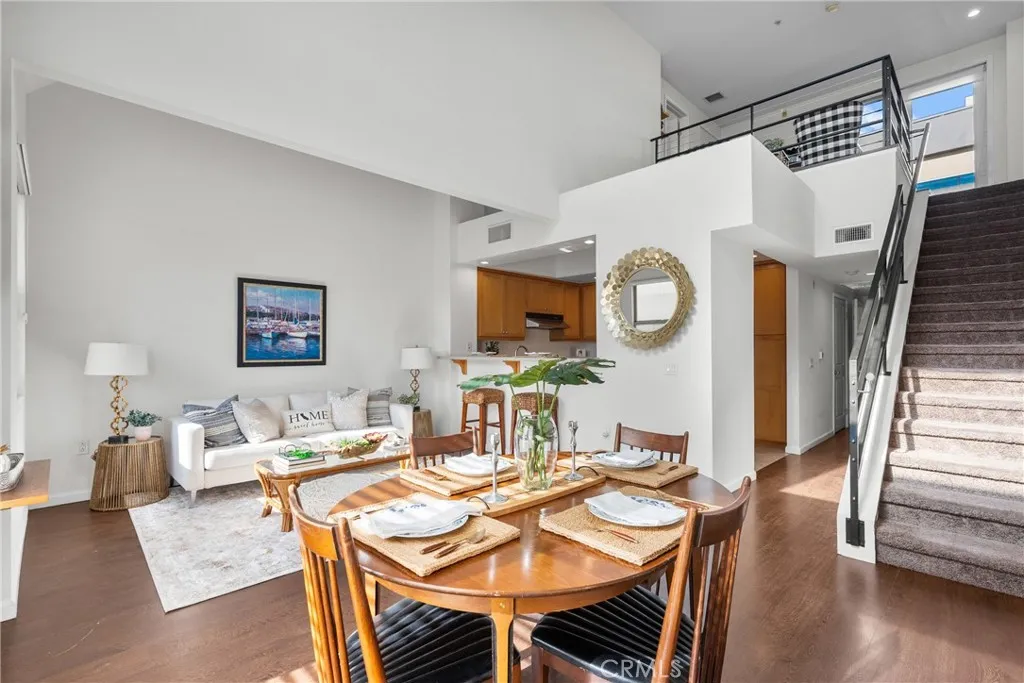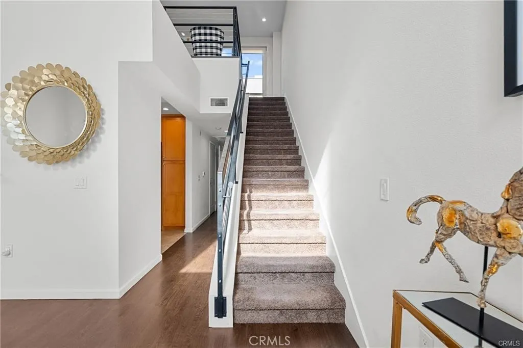 Welcome to 201 E Angeleno Avenue unit 426, a stylish dual-level loft condo at Burbank Village Walk. Perfectly situated in the heart of trendy Burbank. This prime location puts you just steps away from theaters, eateries, coffee shops, fitness studios, and everything downtown Burbank has to offer. The open-concept floor plan with magnificent soaring ceilings and abundant light filled rooms. Kitchen overlooks the living room with breakfast bar with seating ideal for both everyday living and entertaining with brand new high end stainless steel refrigerator and cooktop, this kitchen is a dream with abundant counter space and cabinets, all in pristine condition. This Two private balconies on each floor helps blend the interior and exterior space, offering the perfect spot to relax with your morning coffee or unwind in the evening. Roof top large patio with views of Burbank and surrounding hills ideal for enjoying morning coffee or evening sunsets., truly breathtaking! Modern finishes add a touch of sophistication throughout, creating a turnkey home in one of the most sought-after locations in Burbank Village Walk. Walk upstairs to a spacious loft that offers endless possibilitiesperfect for an office, bedroom, guest space, or cozy retreat and attached 3/4 bath, The tall ceilings and abundant light make this space really happy space. The townhouse is equipped with new central heat and air for year-round comfort. Located in the highly sought-after Burbank Village Walk complex, residents can enjoy a range of on-site amenities including a refreshing heated pool, BBQ grills, an outdo
