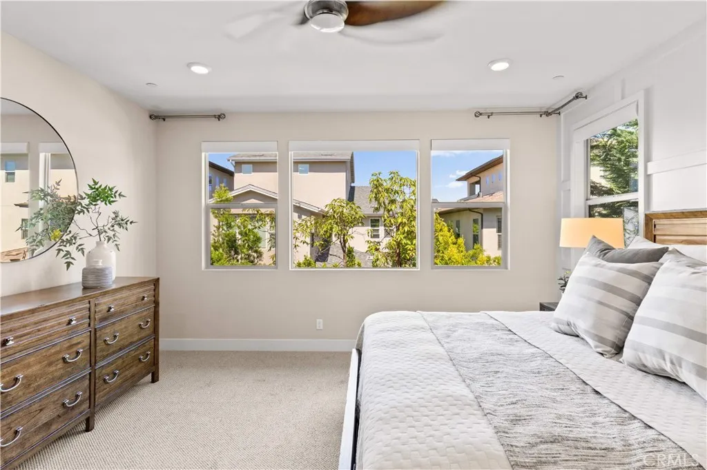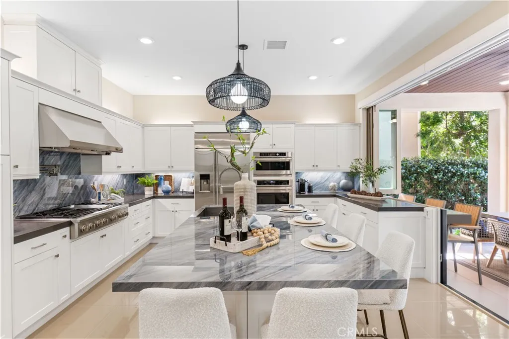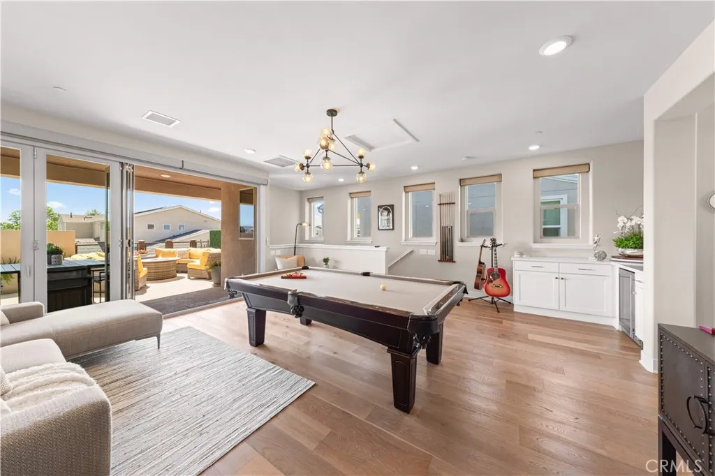 Former model home with designer upgrades, a fully integrated smart home system, a resort-style backyard, and a rare third-floor retreat with open viewsideally positioned on a premium lot with no drive-through traffic and no direct front-facing neighbors, directly across from park and community amenities. This extensively upgraded and meticulously maintained residence offers approximately 3,134 square feet of refined living space, featuring 4 bedrooms, 4 full bathrooms, and 2 powder rooms across three thoughtfully designed levels. A dramatic two-story entry, abundant natural light, and an open-concept layout create a bright and welcoming atmosphere, delivering a true like-new living experience. The gourmet kitchen serves as the centerpiece of the home, showcasing top-of-the-line appliances, upgraded cabinetry, an expanded porcelain island, and a sleek porcelain backsplashseamlessly connecting to the living and dining areas for both everyday living and entertaining. A desirable first-floor bedroom suite with a full bath offers flexibility for guests or multi-generational living. Designed for modern convenience, the home features a fully integrated smart system with automated blinds, Lutron lighting and fan controls, and app-based access for AC and entry. Step outside to a private, resort-style backyard retreat featuring a built-in kitchen, fireplace, water features, and lush landscapingcreating an exceptional outdoor living experience. Upstairs, the primary suite offers generous space, natural light, and a spa-inspired bathroom with upgraded finishes. Two additional bedrooms