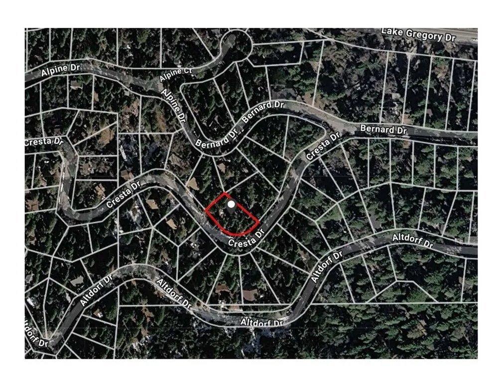 Great opportunity to own this lot in an Alpine Paradise. Just a few blocks to Lake Gregory. This lot is on a paved street with water and power. Beautiful cabins and vacation homes dot the hillsides. Great for a getaway home or Air BnB. Lots of local shops and restaurants. Year around activities at Lake Gregory and local ski resorts.