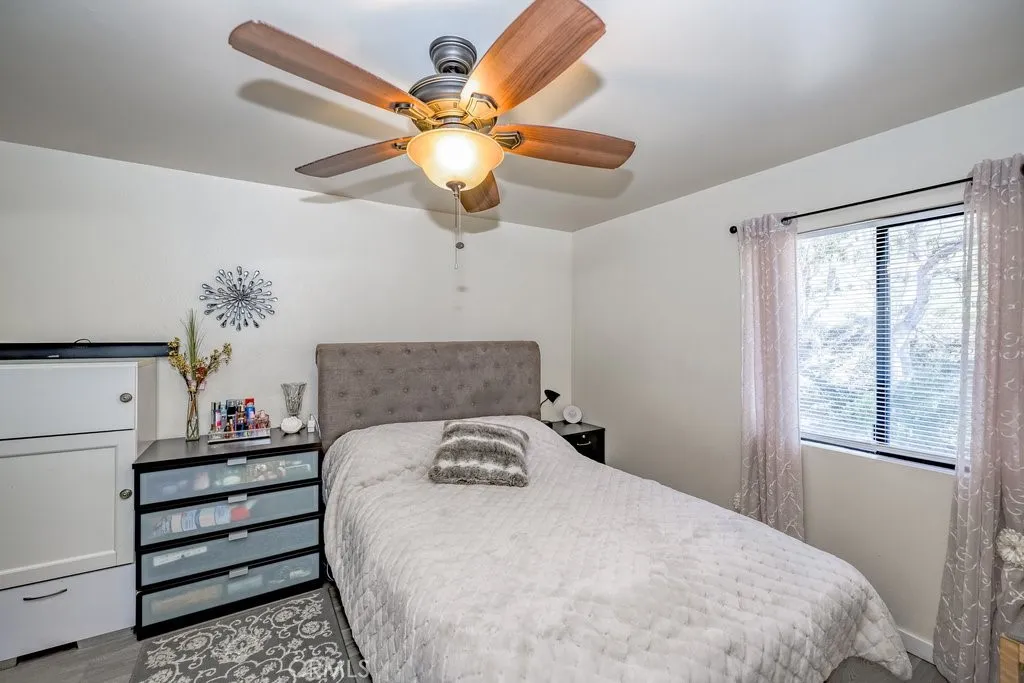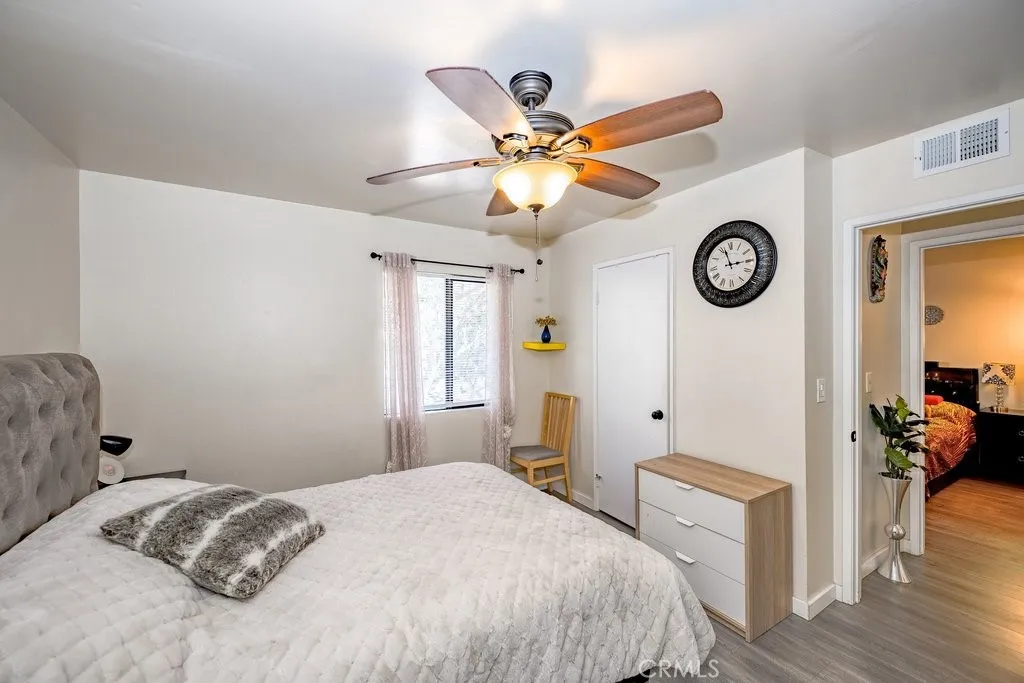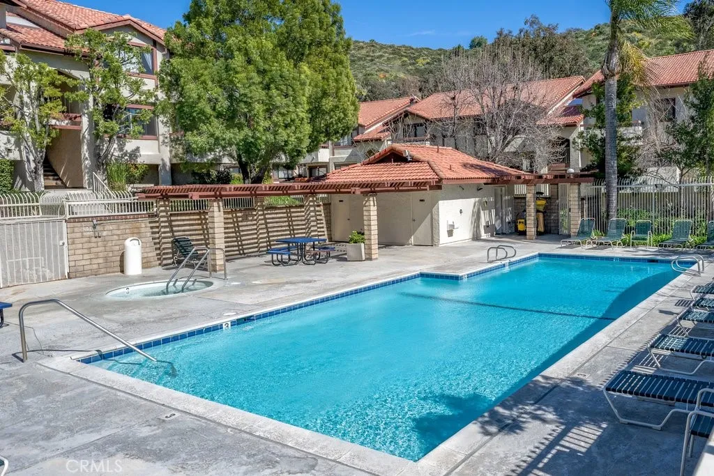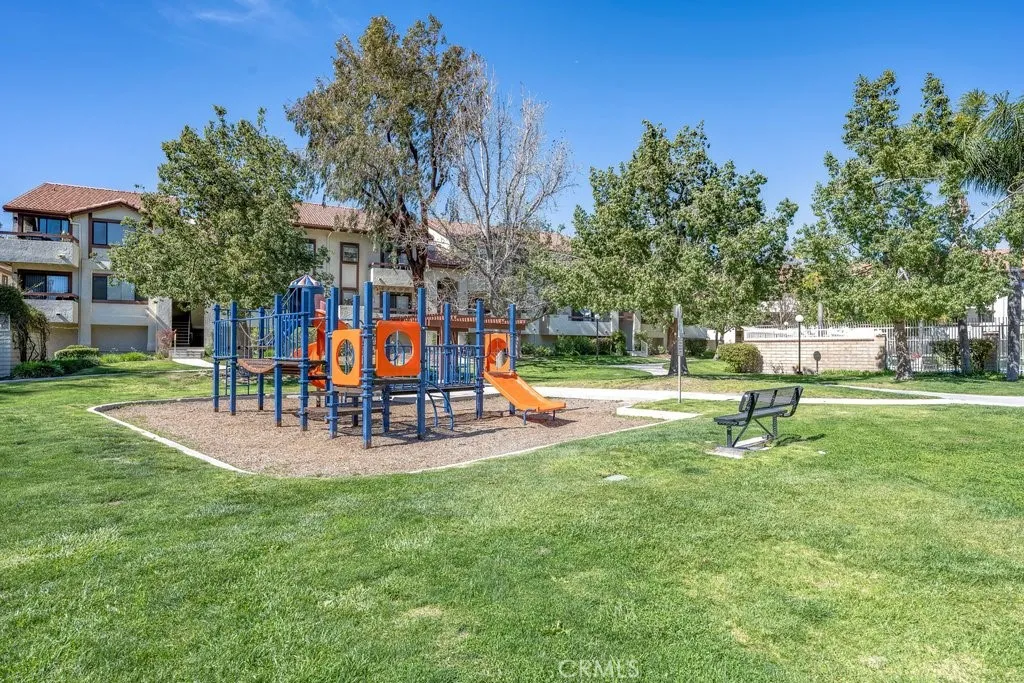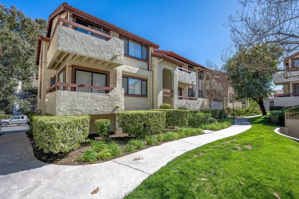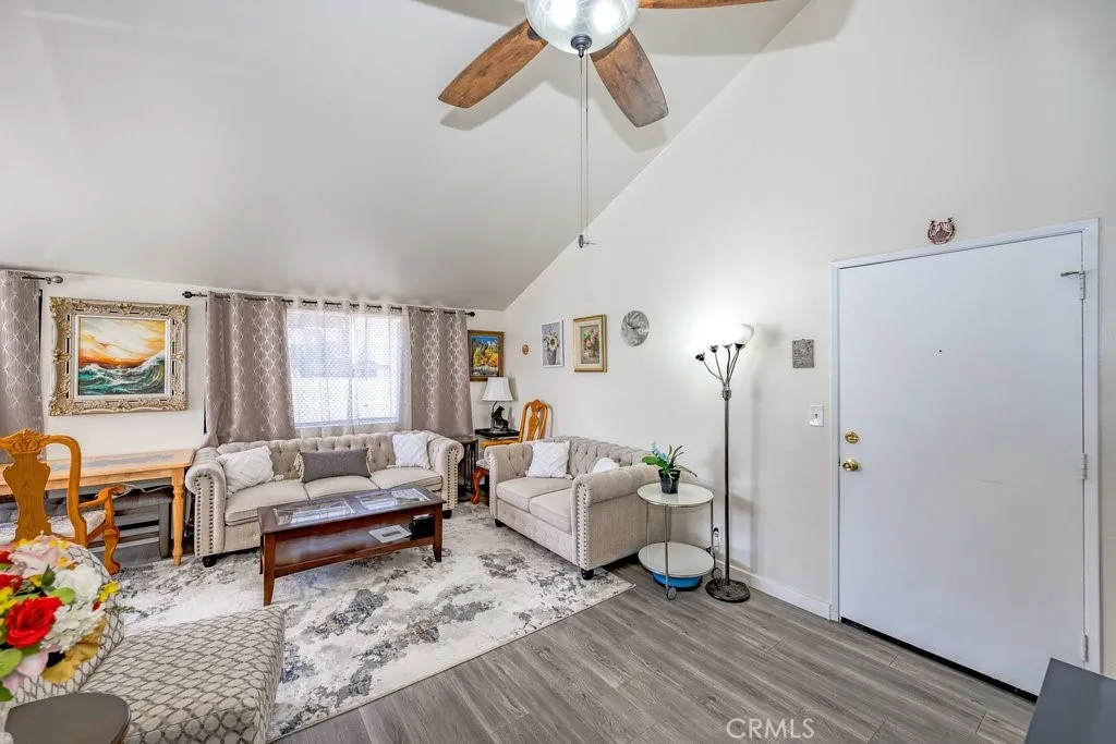 Discover this charming 3 bedroom, 2 bathroom condo located in the desirable American Beauty Condominiums community. This home features vaulted ceilings, an open concept layout, and vinyl wood flooring throughout, complemented by new blinds in every room, creating a bright, modern, and cohesive feel. The kitchen features a quartz countertop and a refrigerator that is 3 years old, adding style, durability, and everyday convenience. The layout is comfortable and functional, offering an inviting living space designed for everyday convenience. Enjoy the ease of in-unit laundry, a private balcony, and a 2-car detached tandem garage providing parking and additional storage. The community offers exceptional amenities including five swimming pools, multiple spas, playgrounds, and beautifully maintained greenbelts. The HOA covers water and trash, adding extra value and convenience. Conveniently located near shopping, dining, restaurants, freeway access, and Costco, this home offers both comfort and accessibility. Move-in ready and well-maintained, this home is ready for its next owner to enjoy.