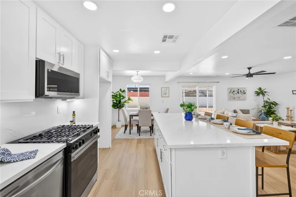 Completely remodeled from top to bottom, this stunning 4-bedroom, 2-bath home blends modern style with everyday comfort. Enjoy brand-new flooring throughout and a beautifully redesigned kitchen featuring sleek cabinetry, updated appliances, and a spacious island. The open-concept layout is filled with natural light and flows seamlessly into the living and dining areas. This home also features all-new plumbing throughout, a brand-new roof, and a new HVAC system, offering added reliability and long-term peace of mind. Built-in Bluetooth speakers provide a modern touch, perfect for everyday living and entertaining. Step outside to a newly installed wood fence along the left side of the property, adding both privacy and curb appeal. With thoughtful upgrades inside and out, this turnkey property is ready for you to move right in!